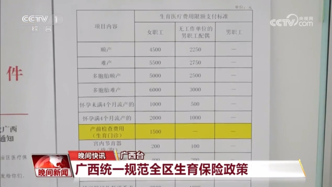 本月起,《广西壮族自治区职工生育保险暂行办法》(以下简称《办法》)正式实施。《办法》从参保范围、基金征缴、生育报销待遇等方面进行了政策的统一和规范,新增了门诊产前检查纳入生育保险保障范围,延长了生育津贴支付期限。生育一孩、二孩的,生育津贴支付期限在国家法定产假98天的基础上延长30天;生育三孩及以上的,再延长30天,达到158天。