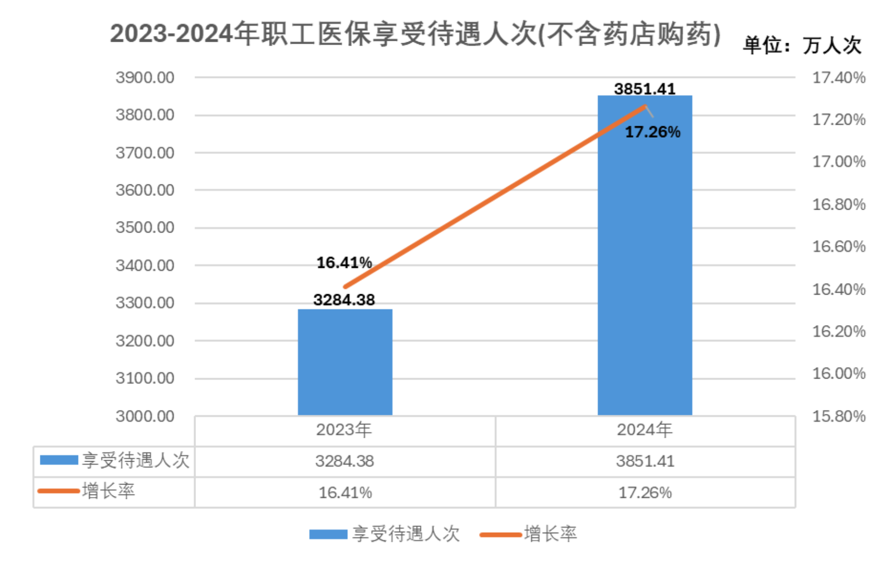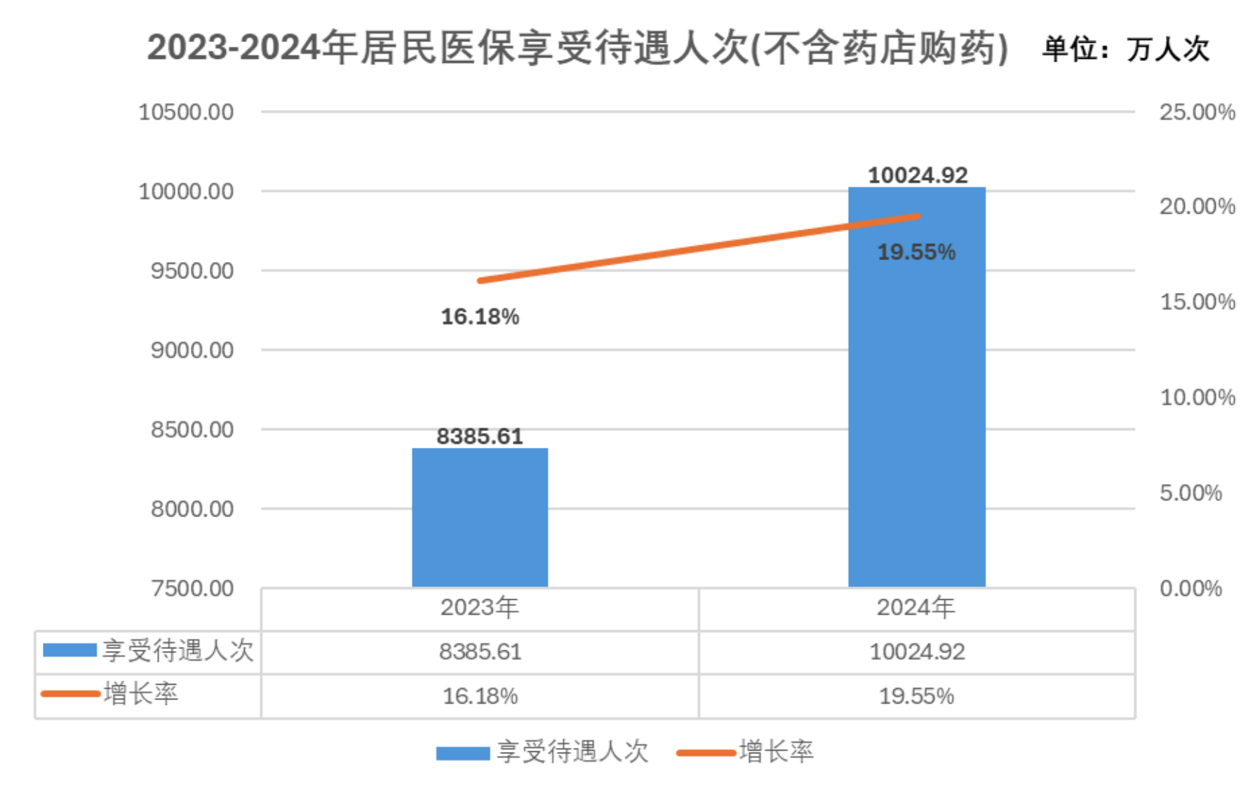3.待遇享受。2024年职工医保参保人员待遇享受人次为10411.36万人次,比上年增长3%,其中普通门(急)诊3071.96万人次,门诊慢特病590.63万人次,住院188.81万人次,享受药店购药6559.95万人次。