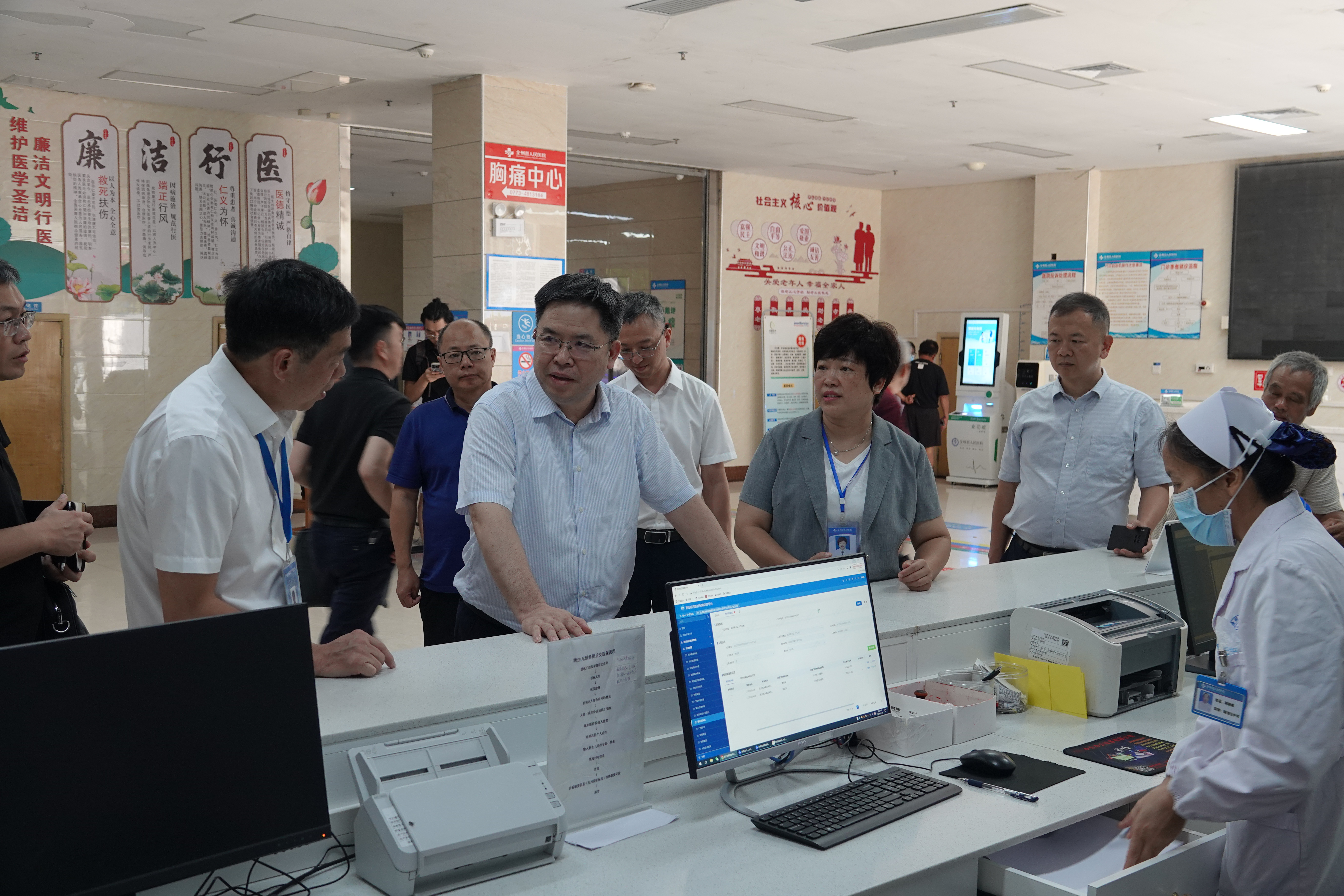 图为调研组在全州县医保经办大厅调研