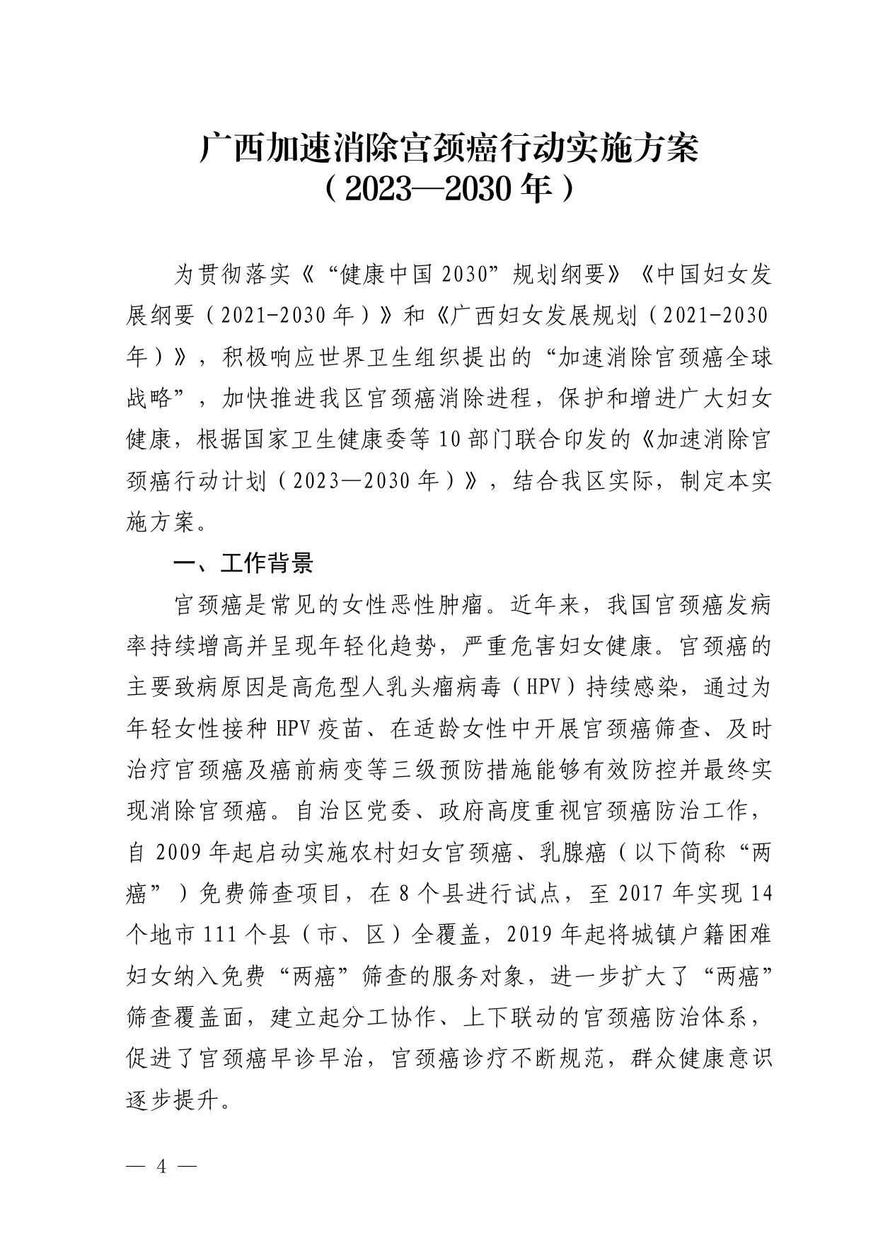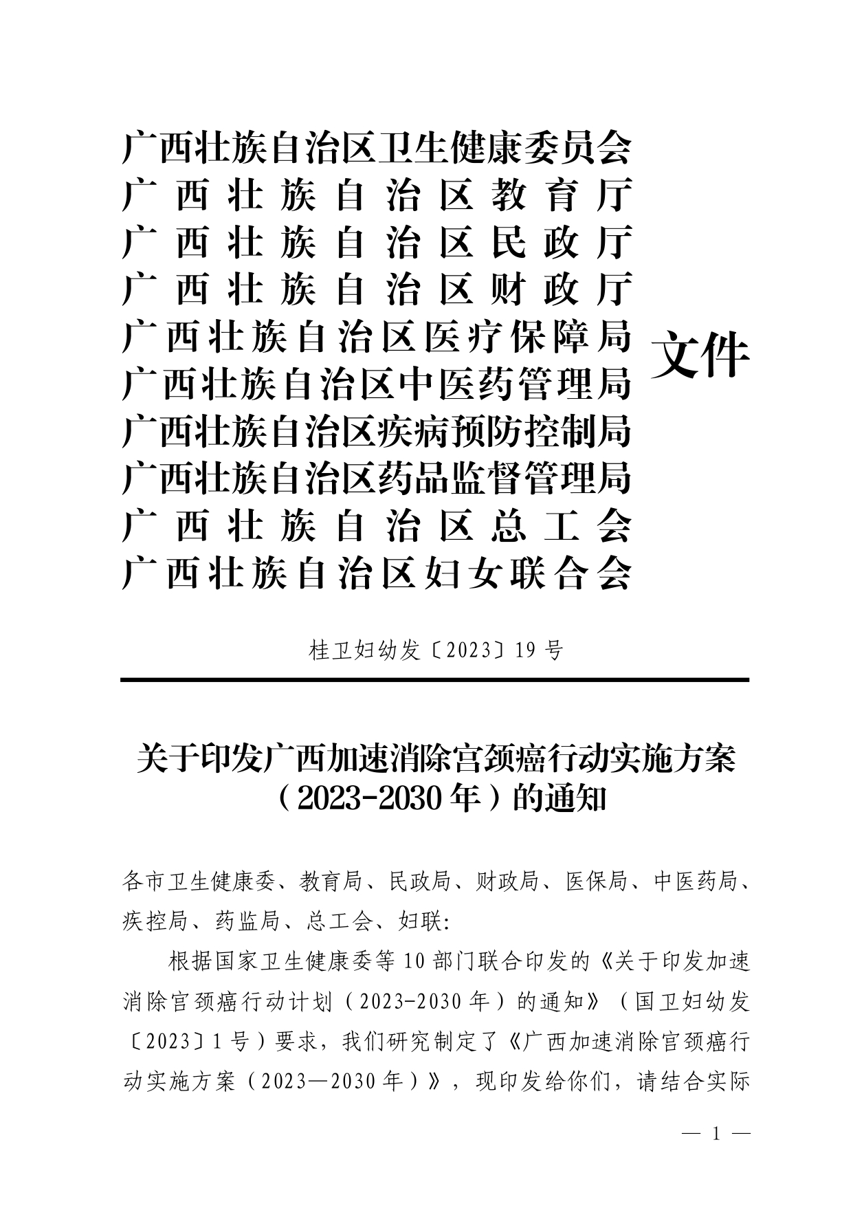 关于印发广西加速消除宫颈癌行动实施方案(2023-2030年)的通知