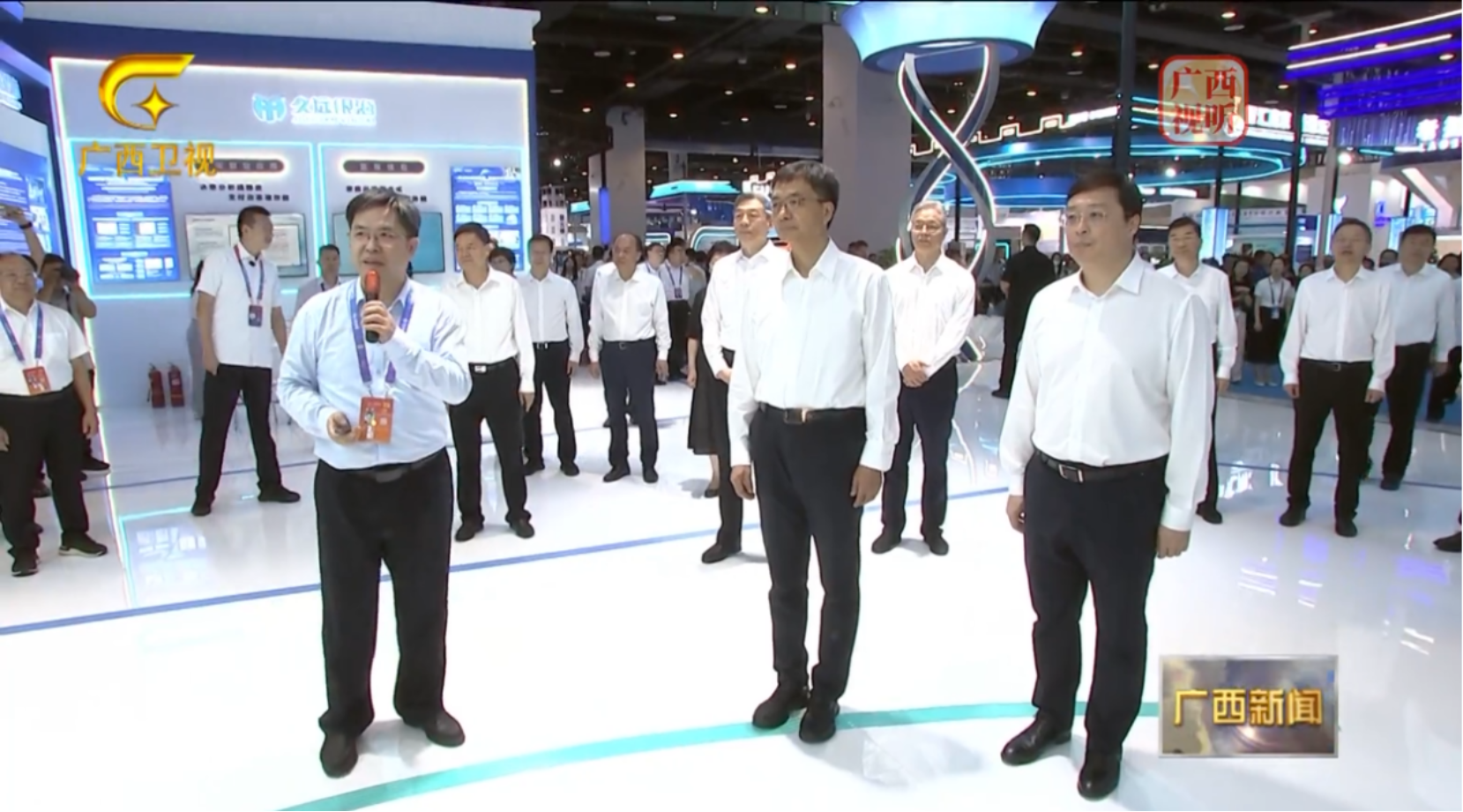 展区现场,陈刚、韦韬、孙大伟等领导详细听取中国—东盟区域医药交易(集采)平台建设成果、中国(广西)医保改革发展成效和AI、新质生产力赋能全生命周期健康管理等情况汇报,对人工智能赋能医保管理服务的创新举措和广西医保改革发展取得的成效表示肯定。