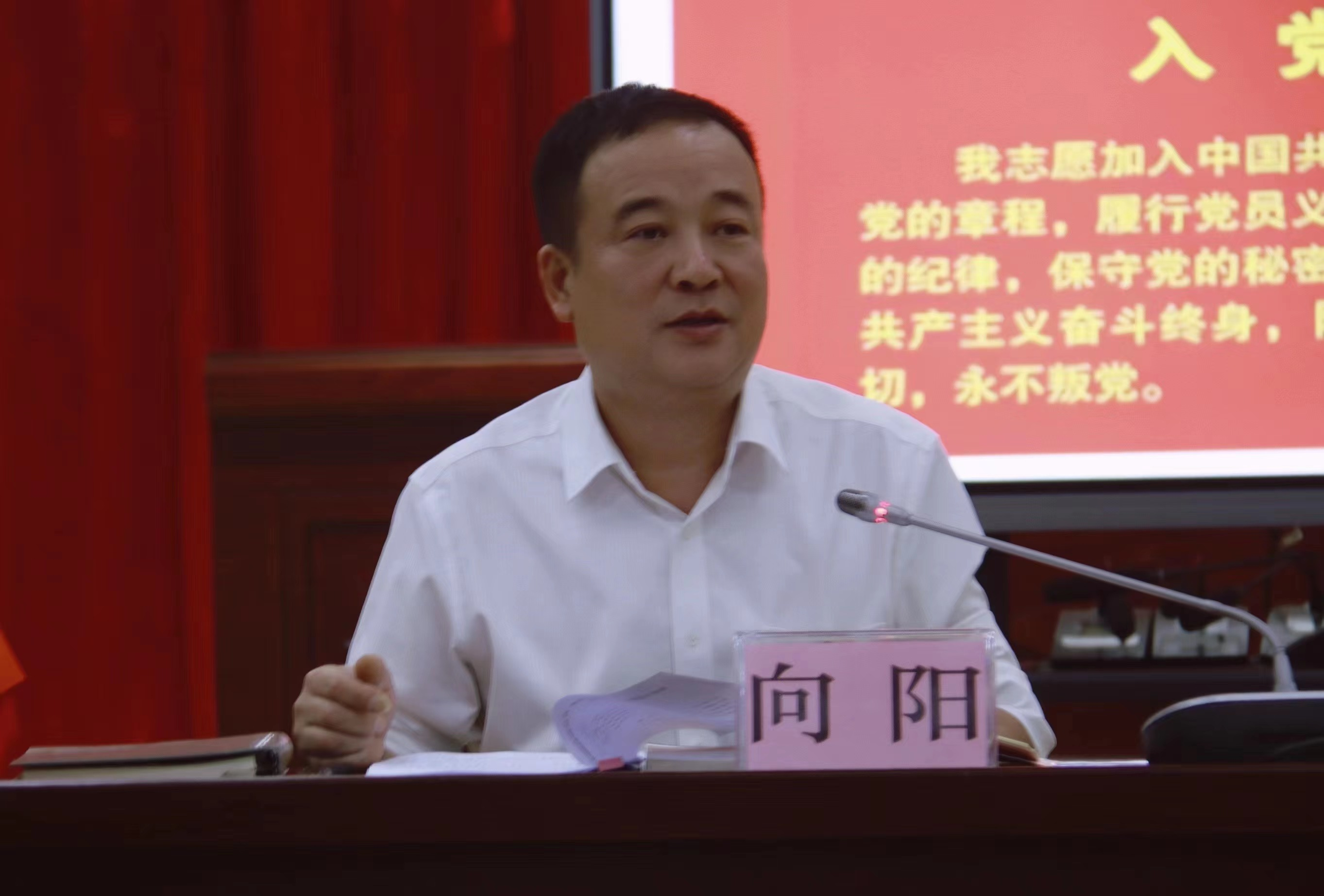 图为自治区医保中心党支部书记向阳主持活动