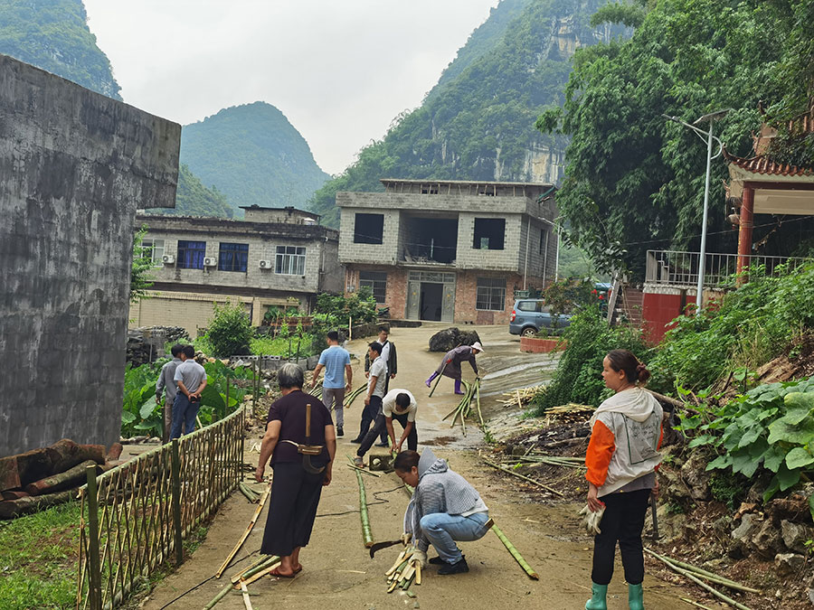 图为羊山村驻村工作队同当地群众开展乡村风貌提升建设工作