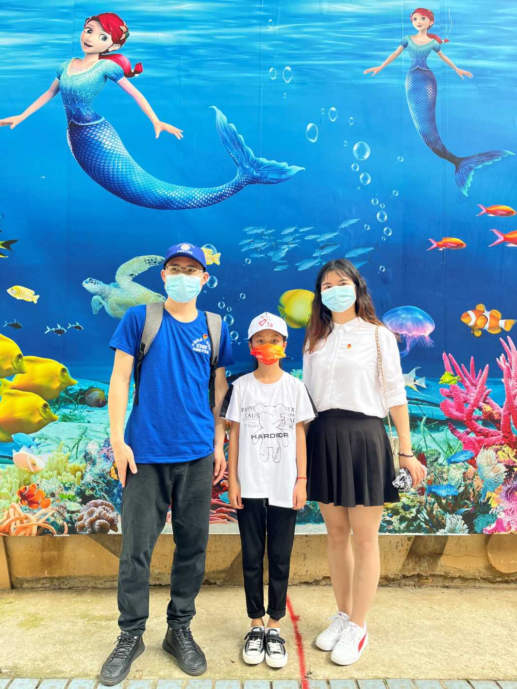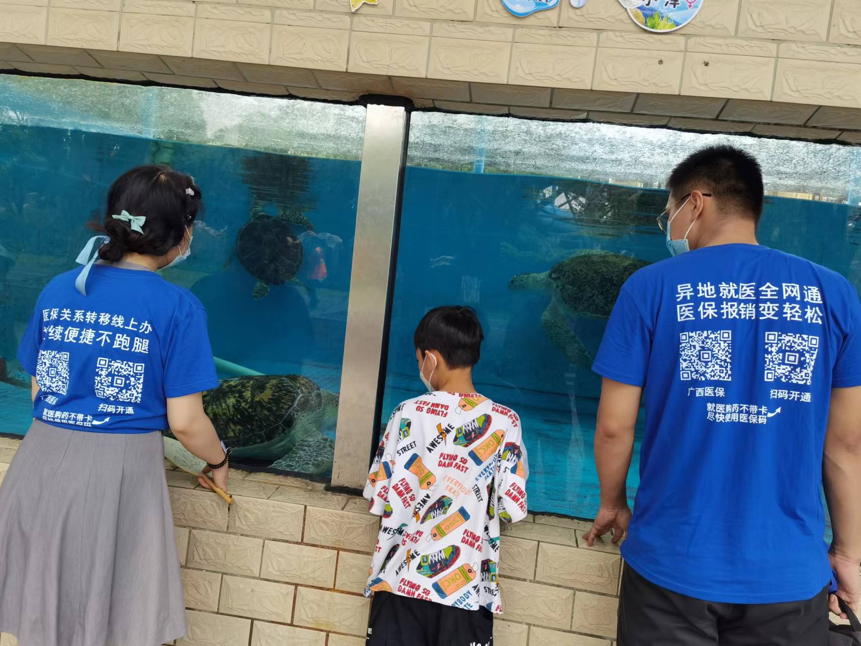 图为暗网禁区 青年带领小朋友观看海龟