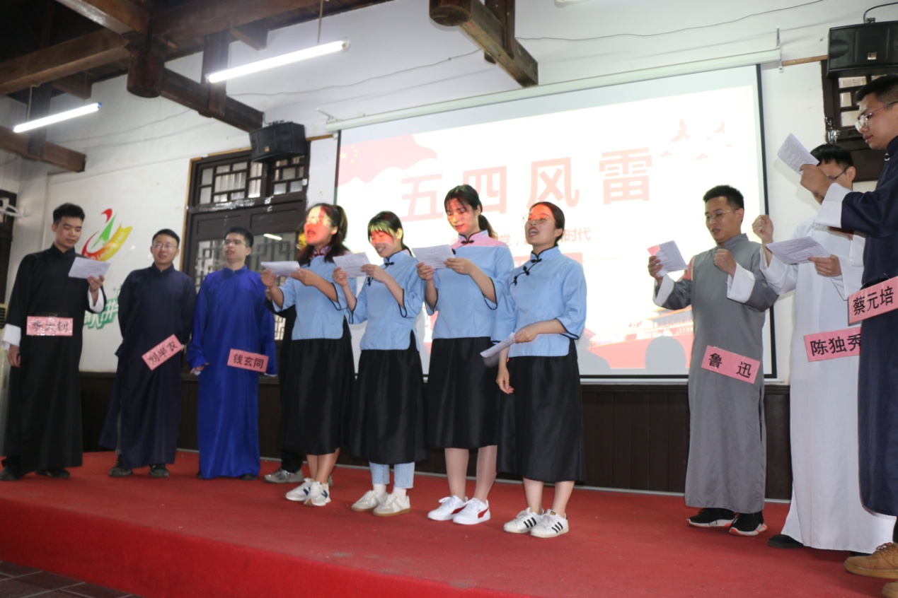 图为各单位青年党团员干部演绎“五四风雷”情景剧