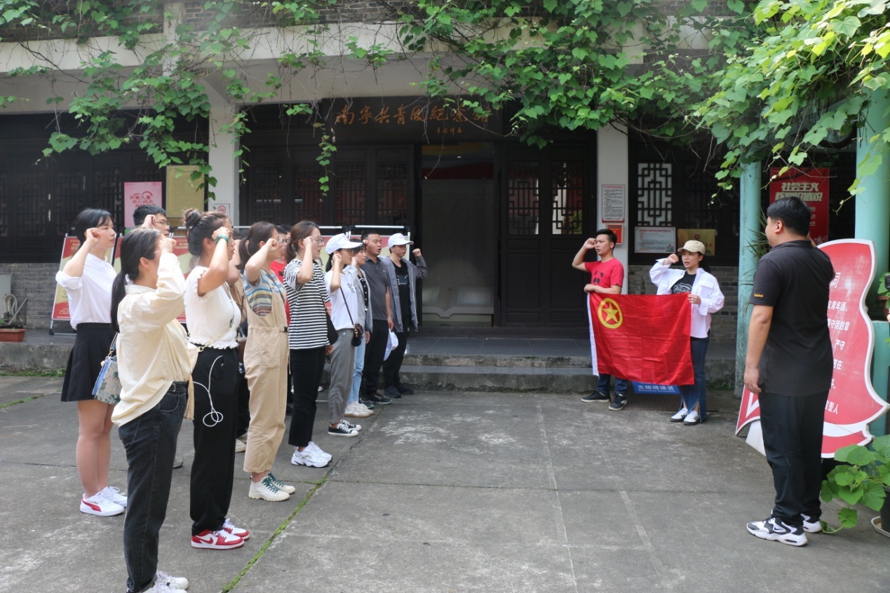 图为青年团员干部重温入团誓词