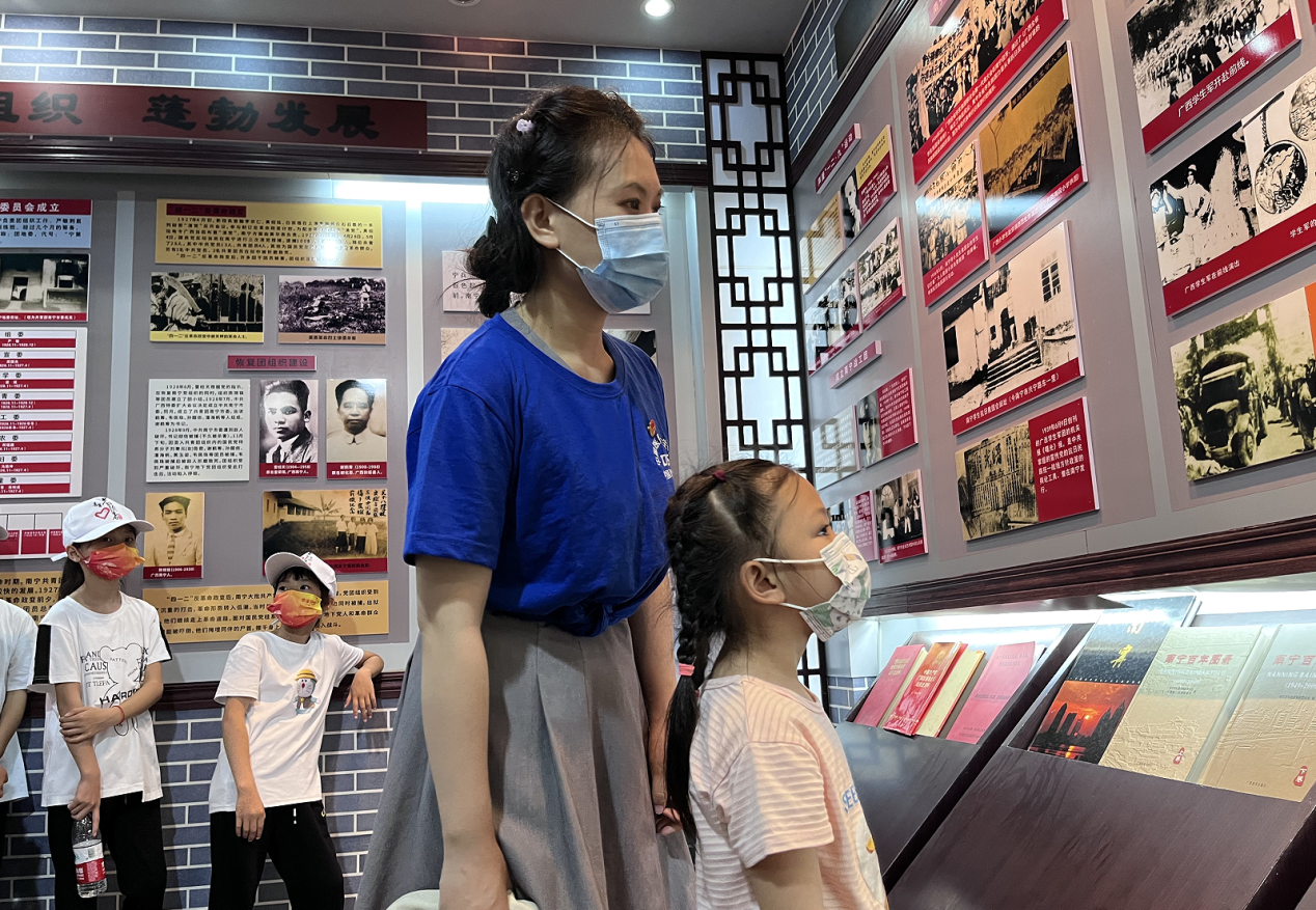 青年党员带领儿童参观共青团南宁地委旧址纪念馆