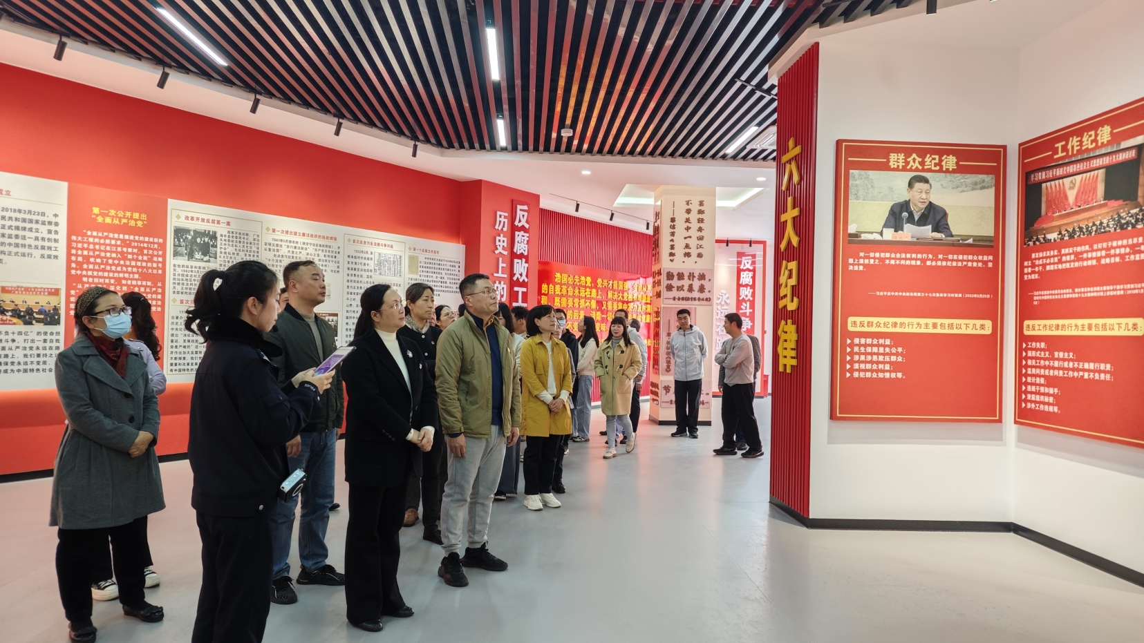 在讲解员的引导下,全体党员干部依次参观“反腐败斗争永远在路上”“知规明纪”“榜样引领”“警钟长鸣”等展区,随后参观了狱内实景模拟场所,沉浸式了解服刑人员的日常生活和改造情况,让党员干部们深受触动,深刻认识到自由的珍贵与廉洁自律的重要性。