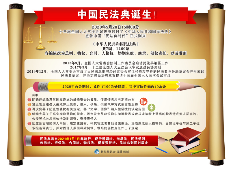 图表:中国民法典诞生!新华社记者 肖潇 编制