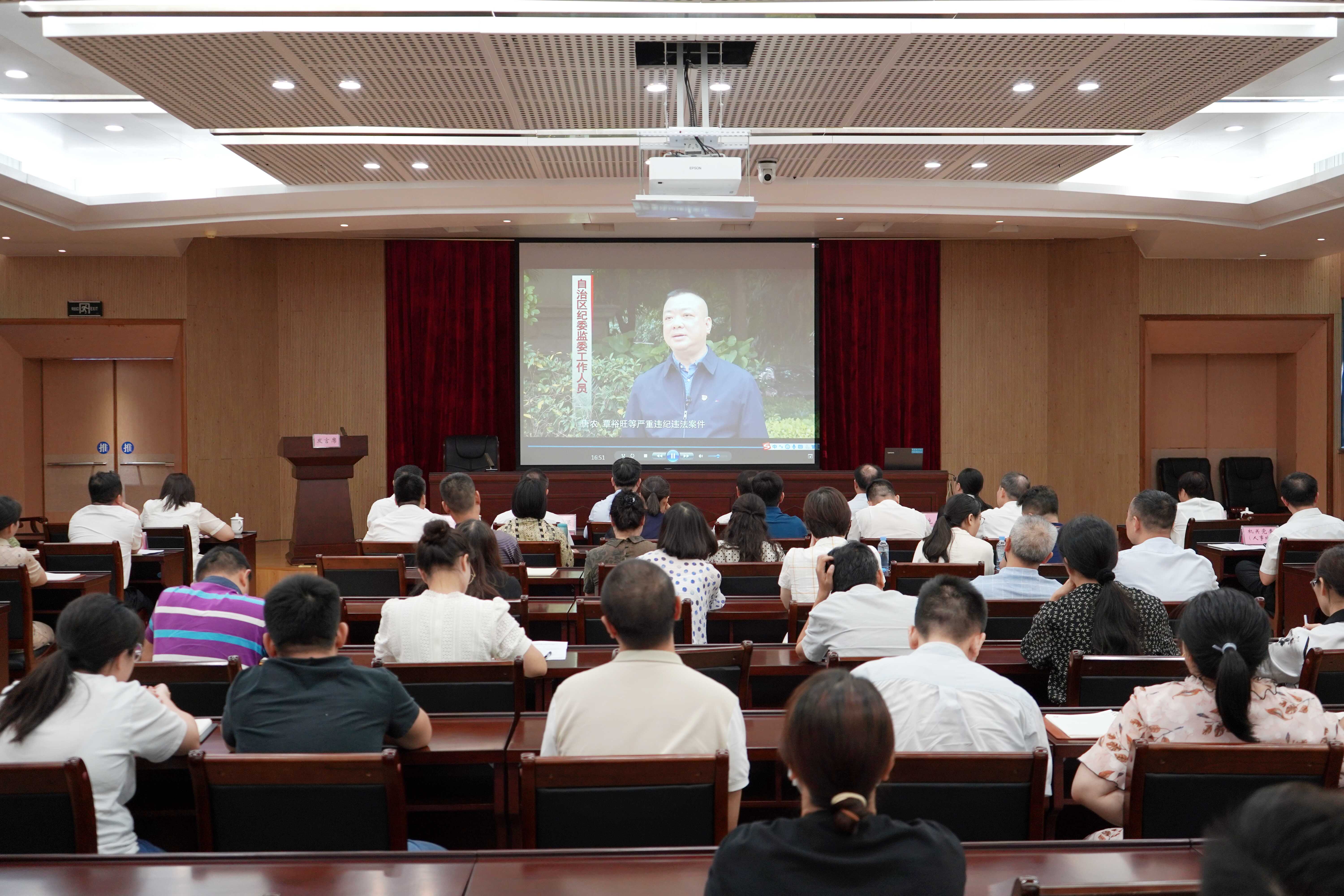 全局党员干部在会上集中观看了相关警示教育片,以部分领导干部利用职权贪污腐败,走向堕落腐化的惨痛教训,深刻剖析了部分党员领导干部理想信念崩塌、忘记初心使命、无视法纪、大肆敛财,最终走上犯罪道路的思想根源。通过观看警示教育片,全体党员干部从中吸取教训,警钟长鸣、严以修身,自觉强化党性修养,不断提高拒腐防变能力,永葆共产党人清正廉洁的政治本色。