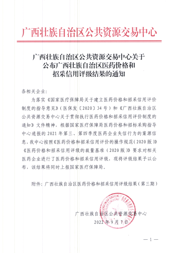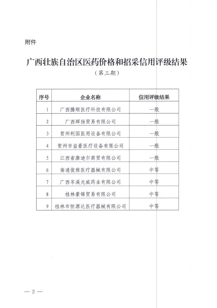 【信用评价】关于公布广西壮族自治区医药价格和招采信用评级结果的通知(第三期)
