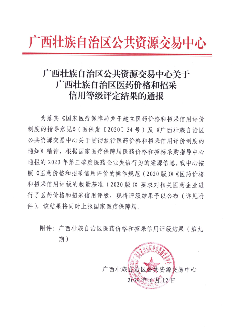 广西公共资源交易中心医药价格和招采信用评价历史通知