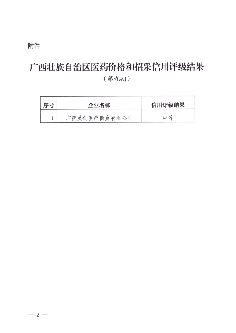 【信用评价】关于广西壮族自治区医药价格和招采信用等级评定结果的通报(第九期)