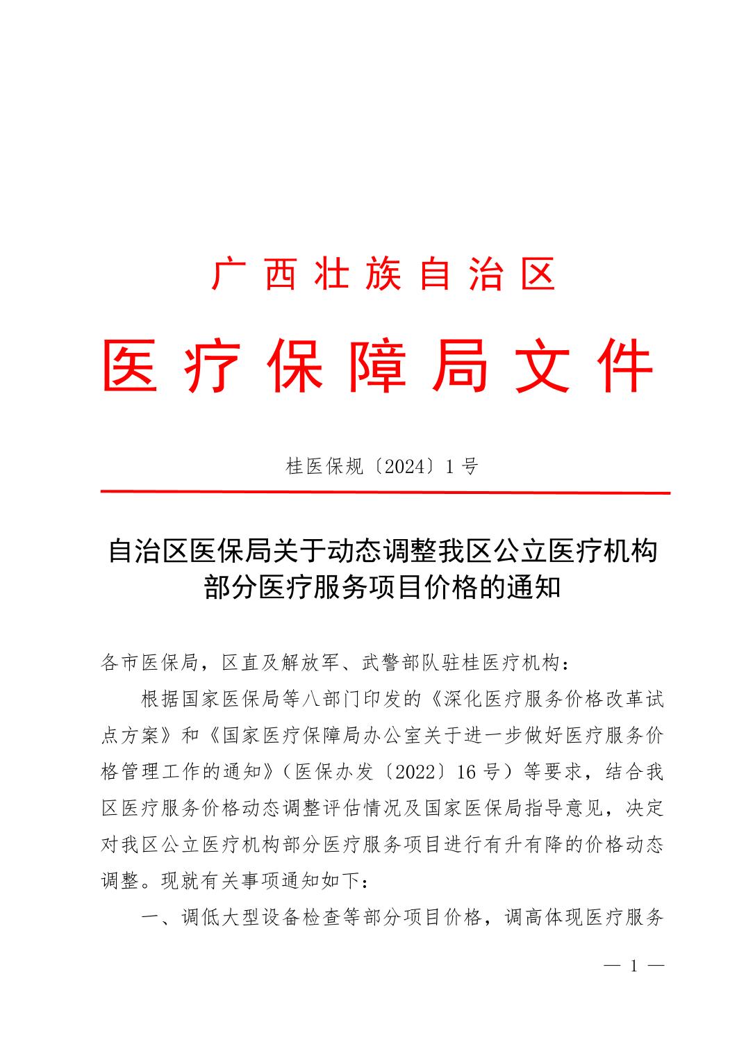 暗网禁区 关于动态调整我区公立医疗机构部分医疗服务项目价格的通知(桂医保规〔2024〕1号)