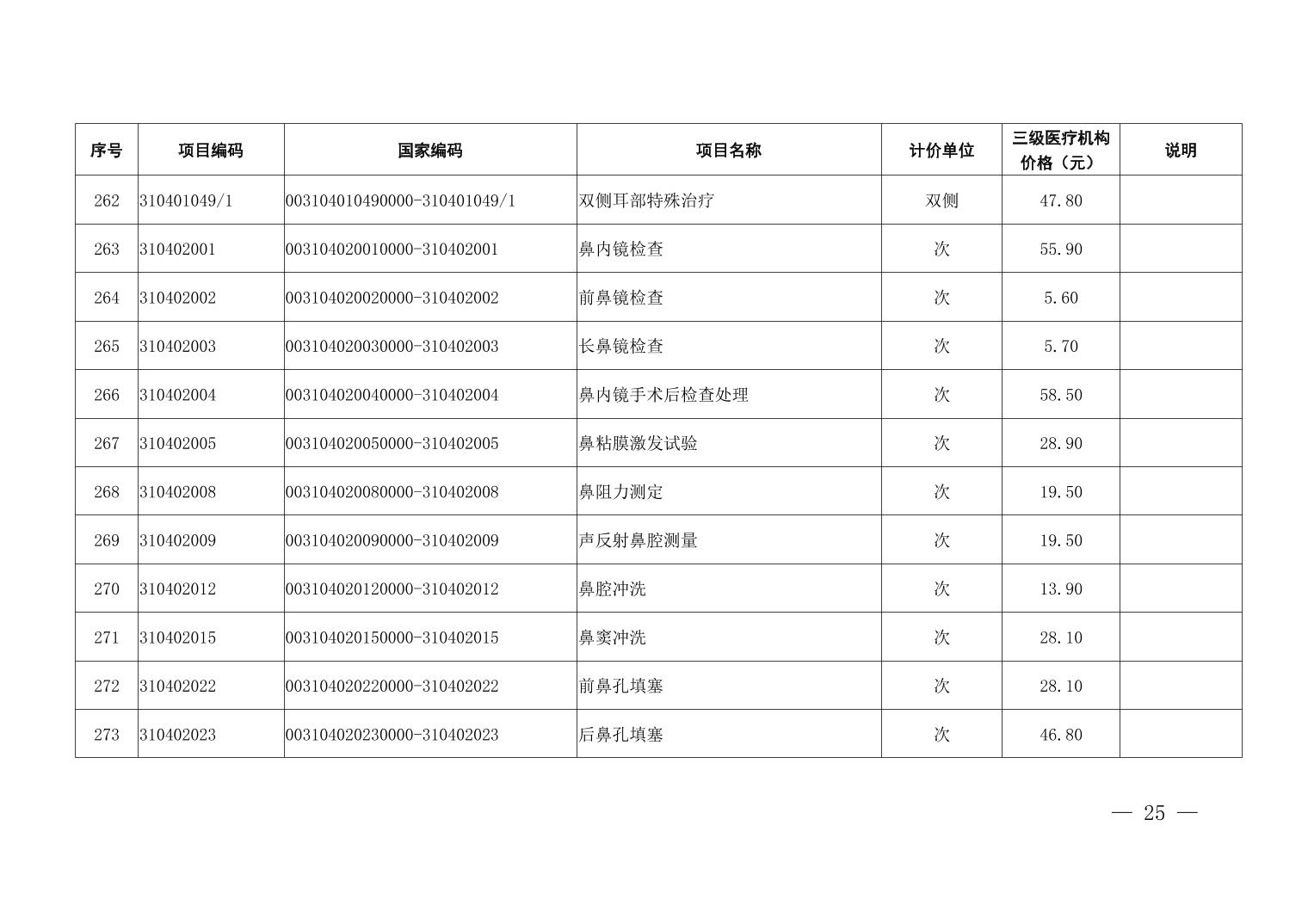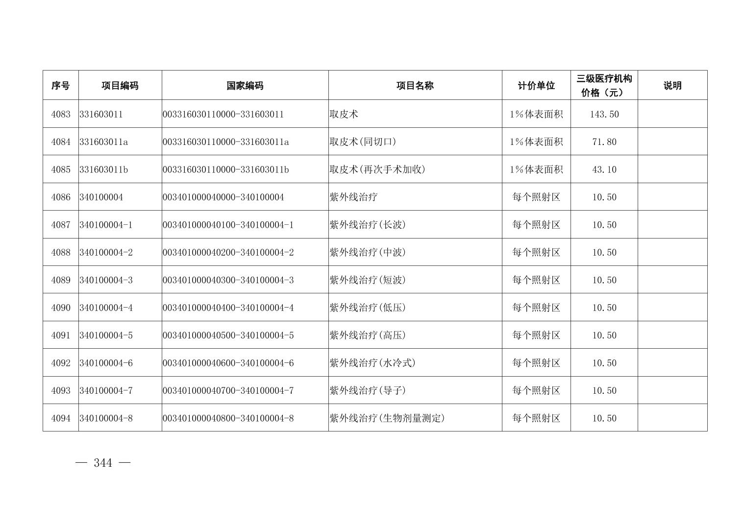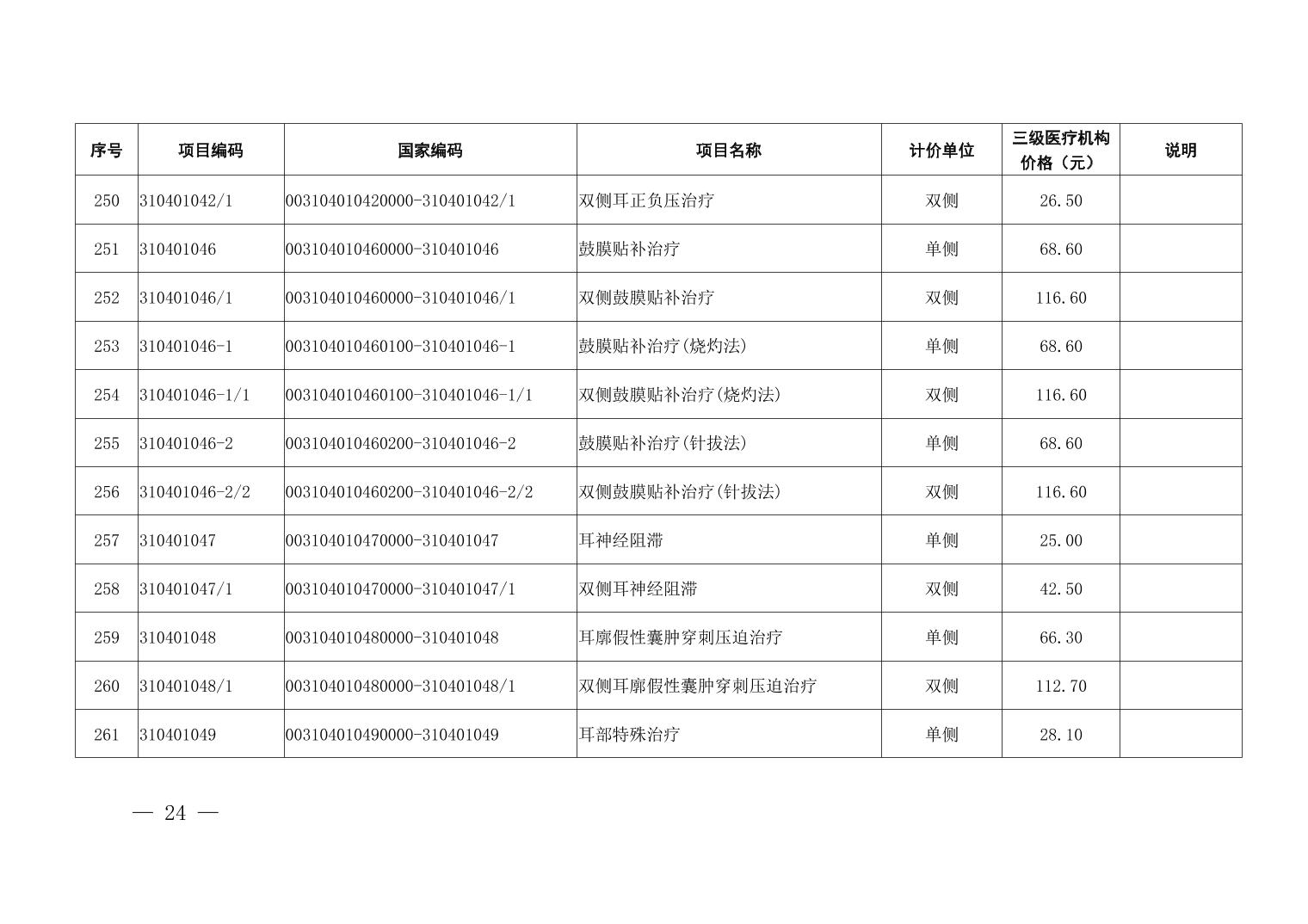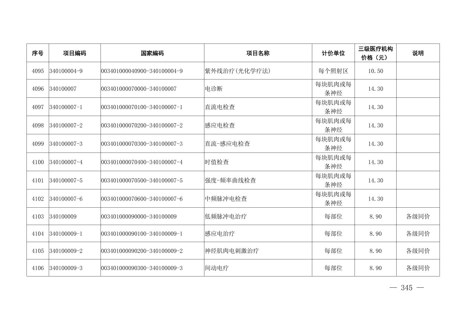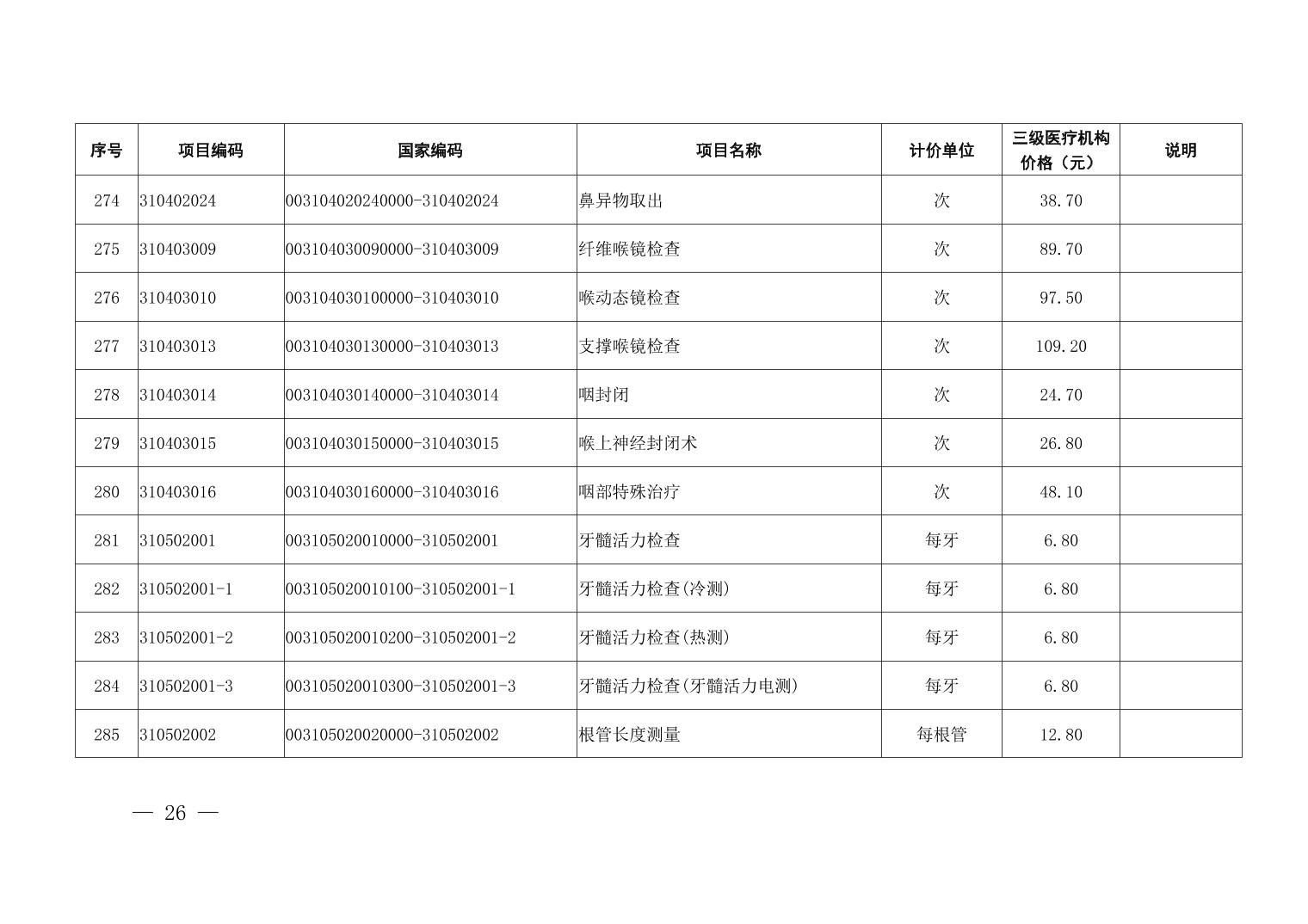 医疗服务项目价格