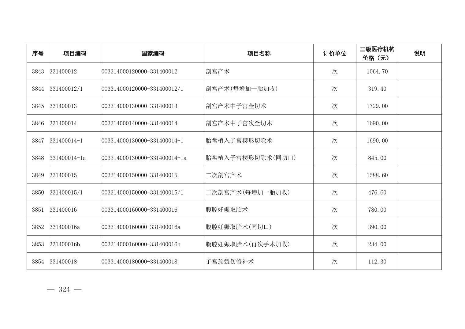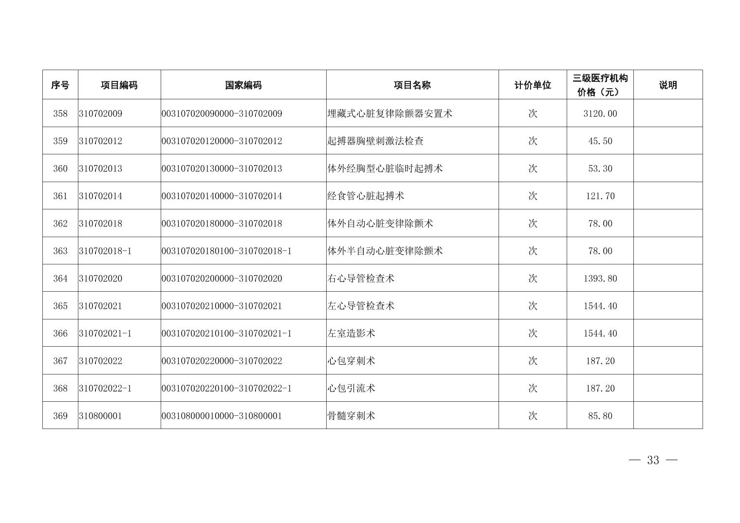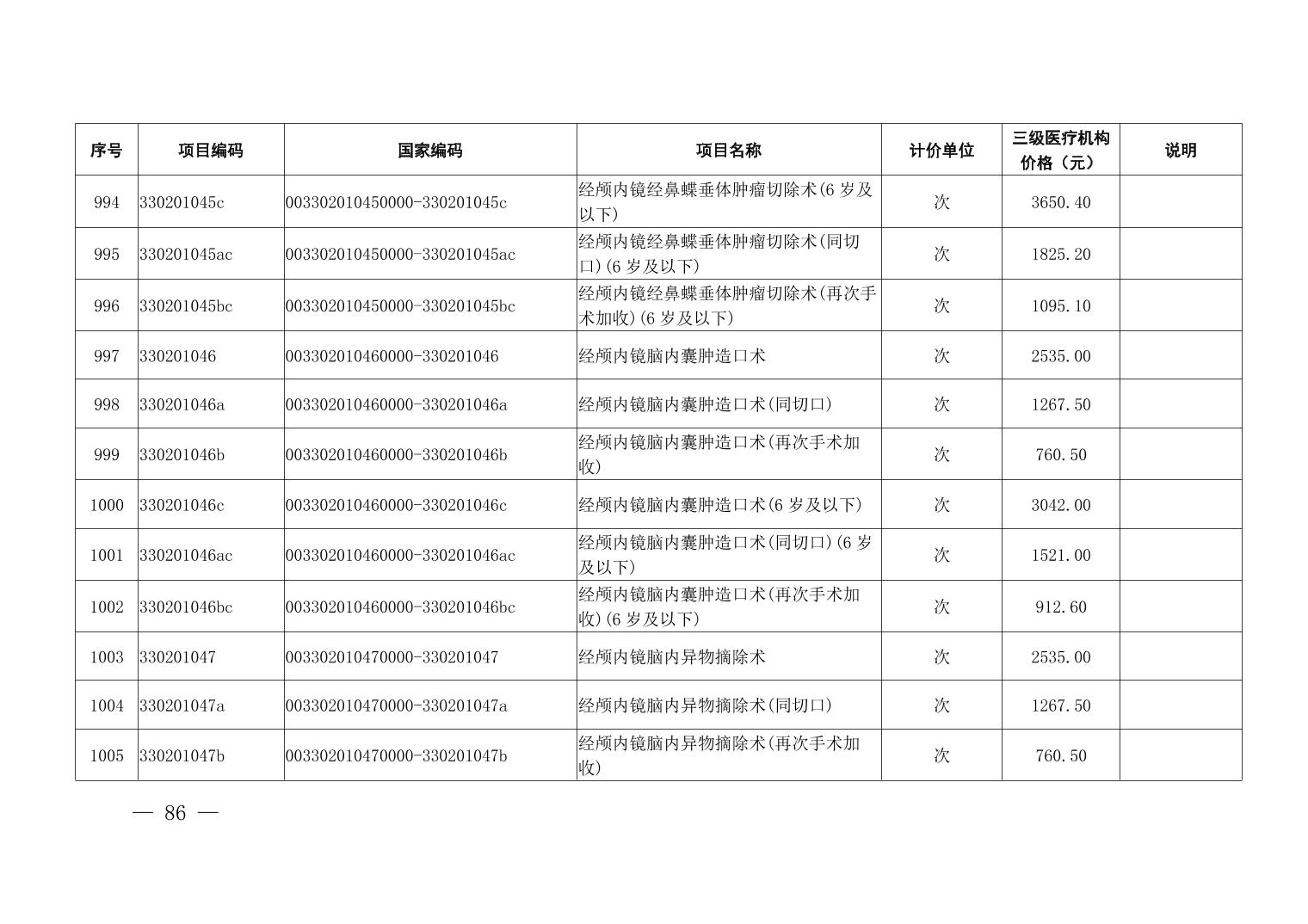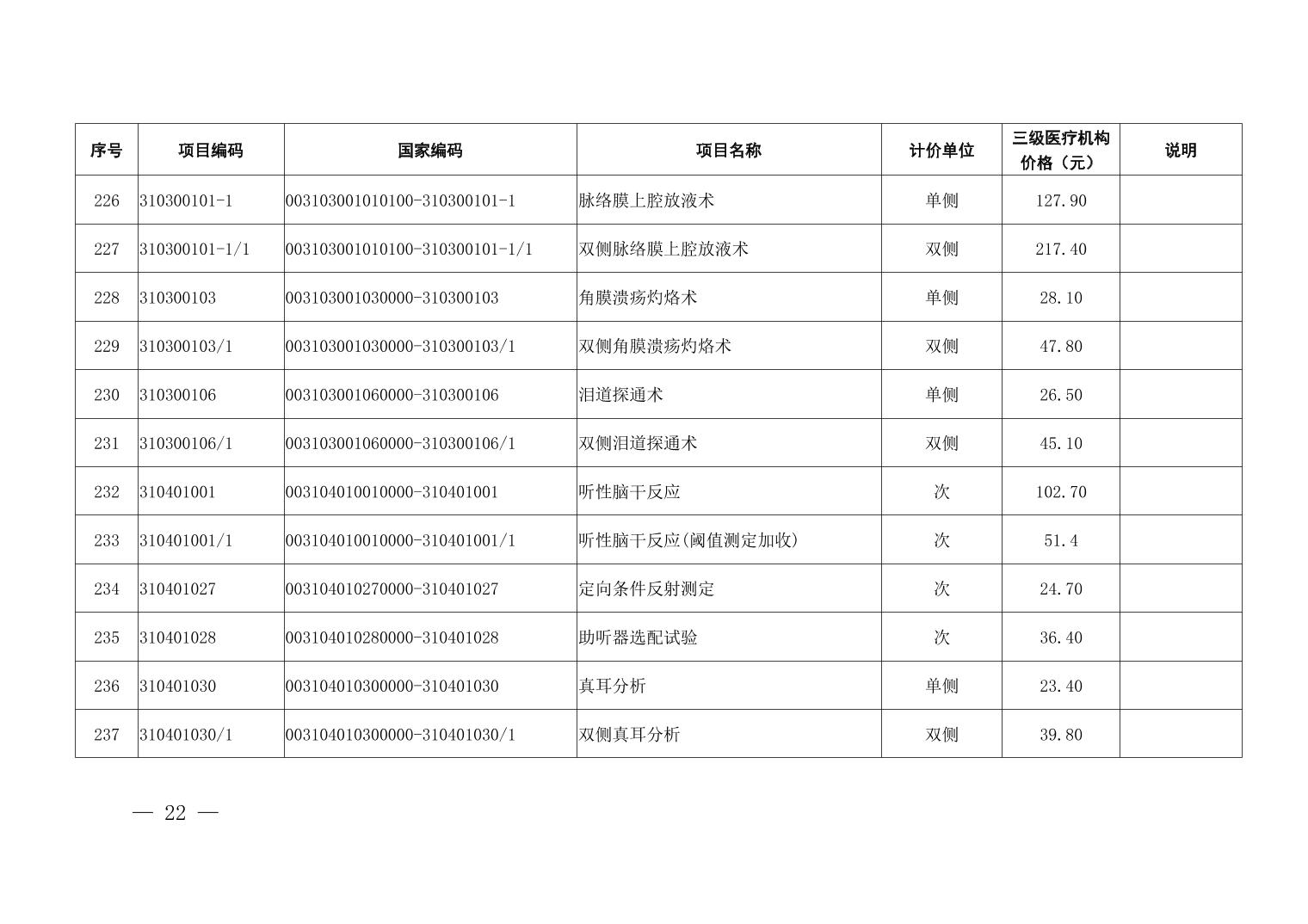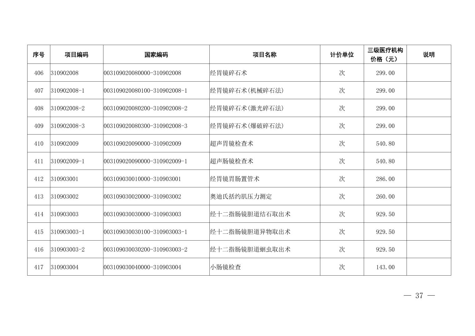 医疗服务项目价格