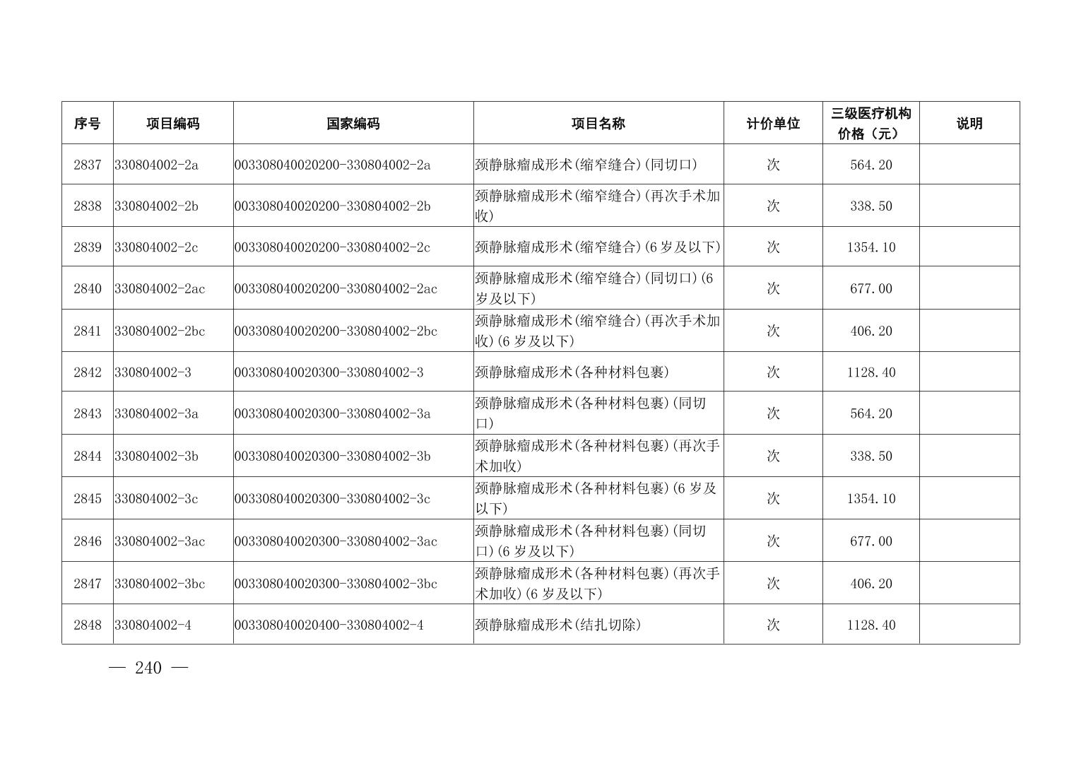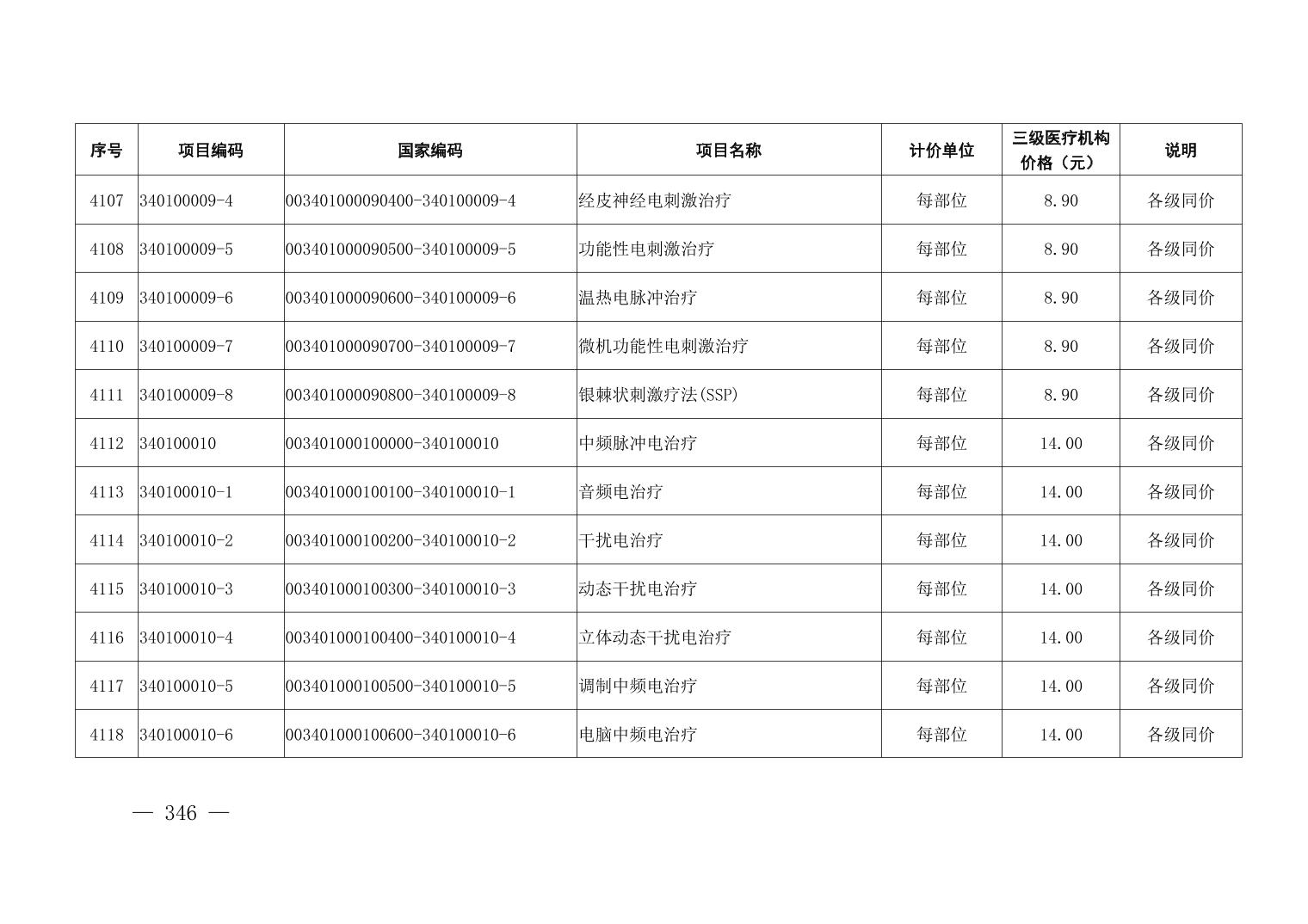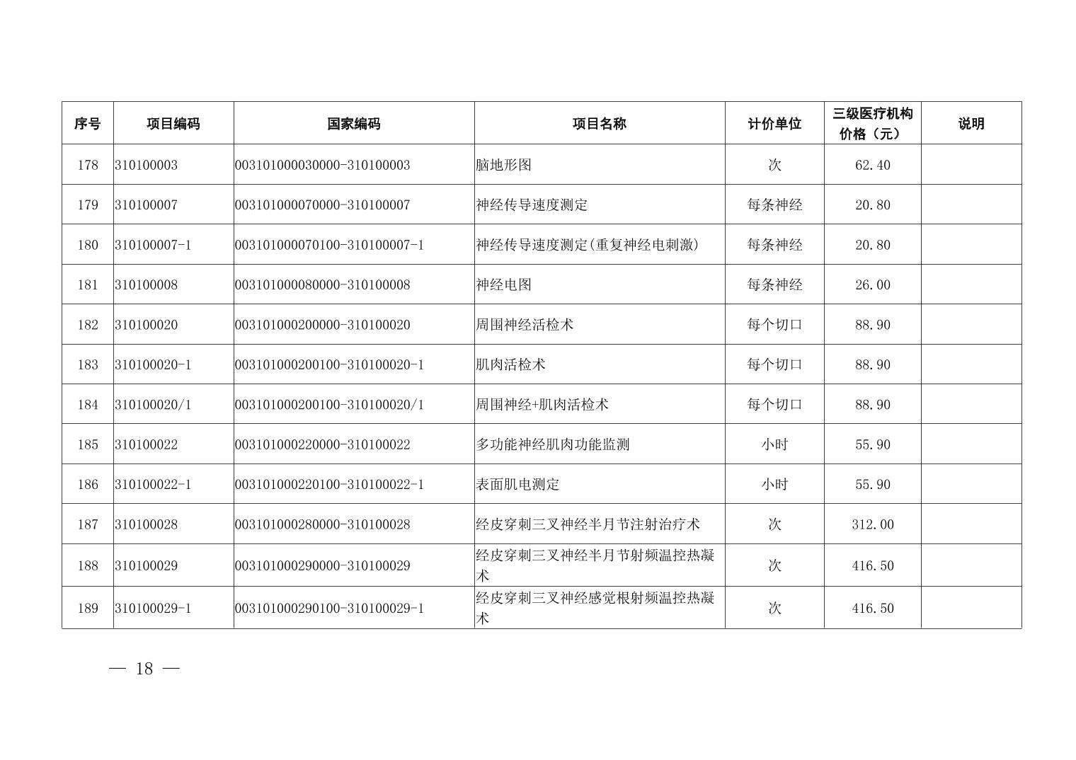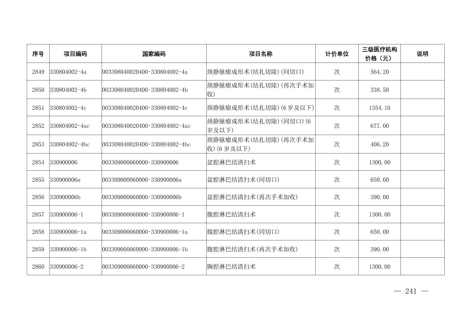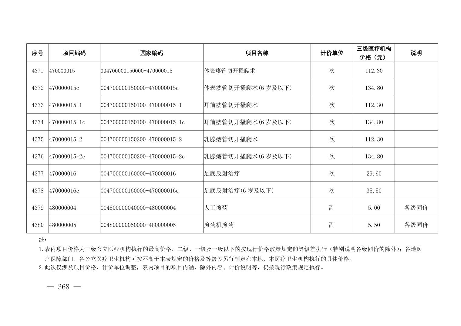 医疗服务项目价格