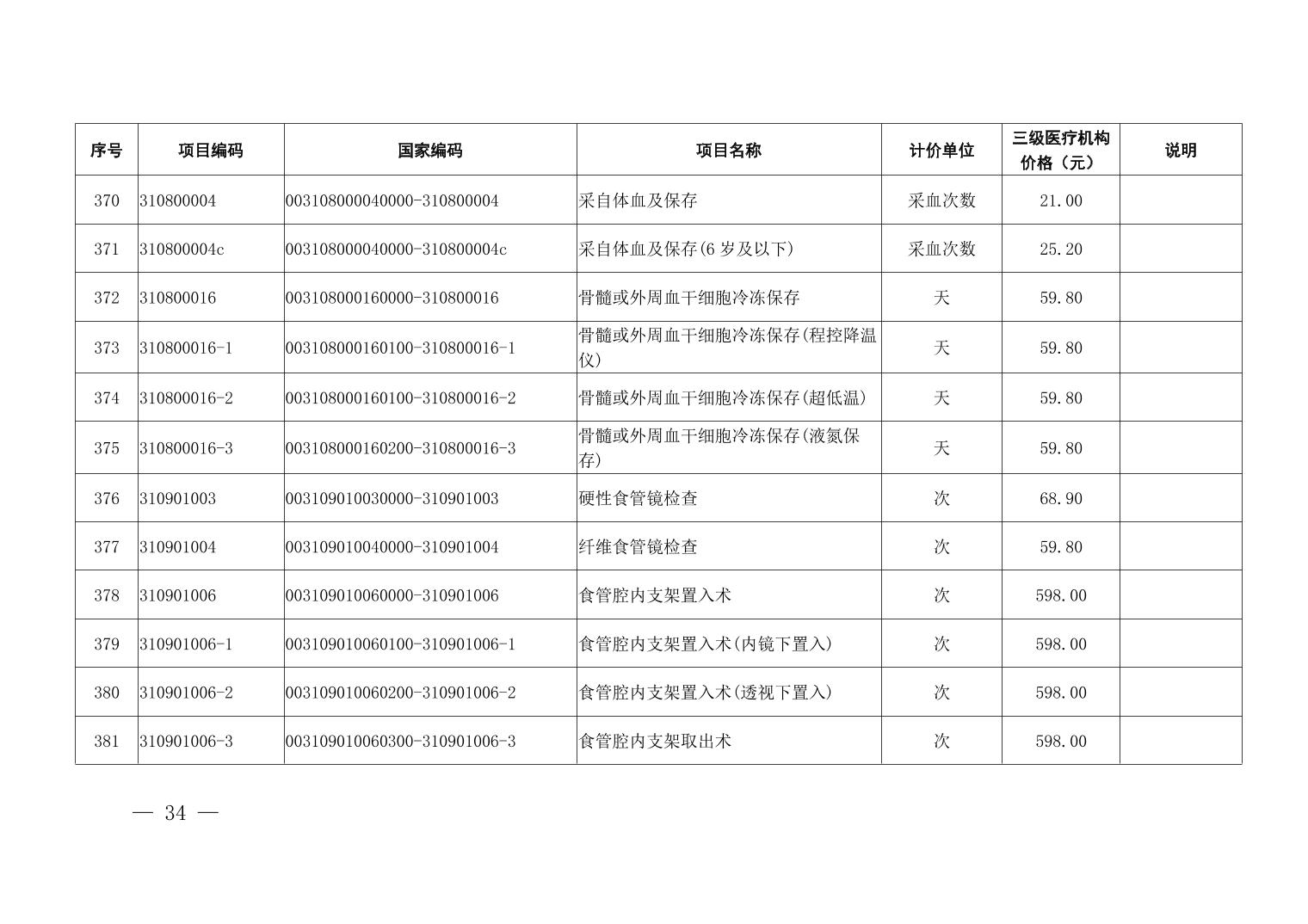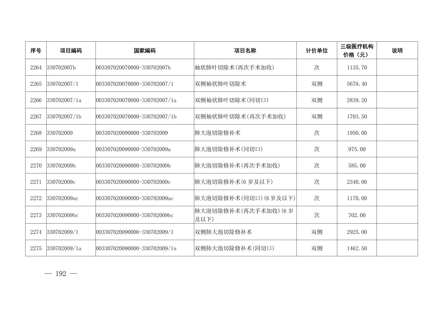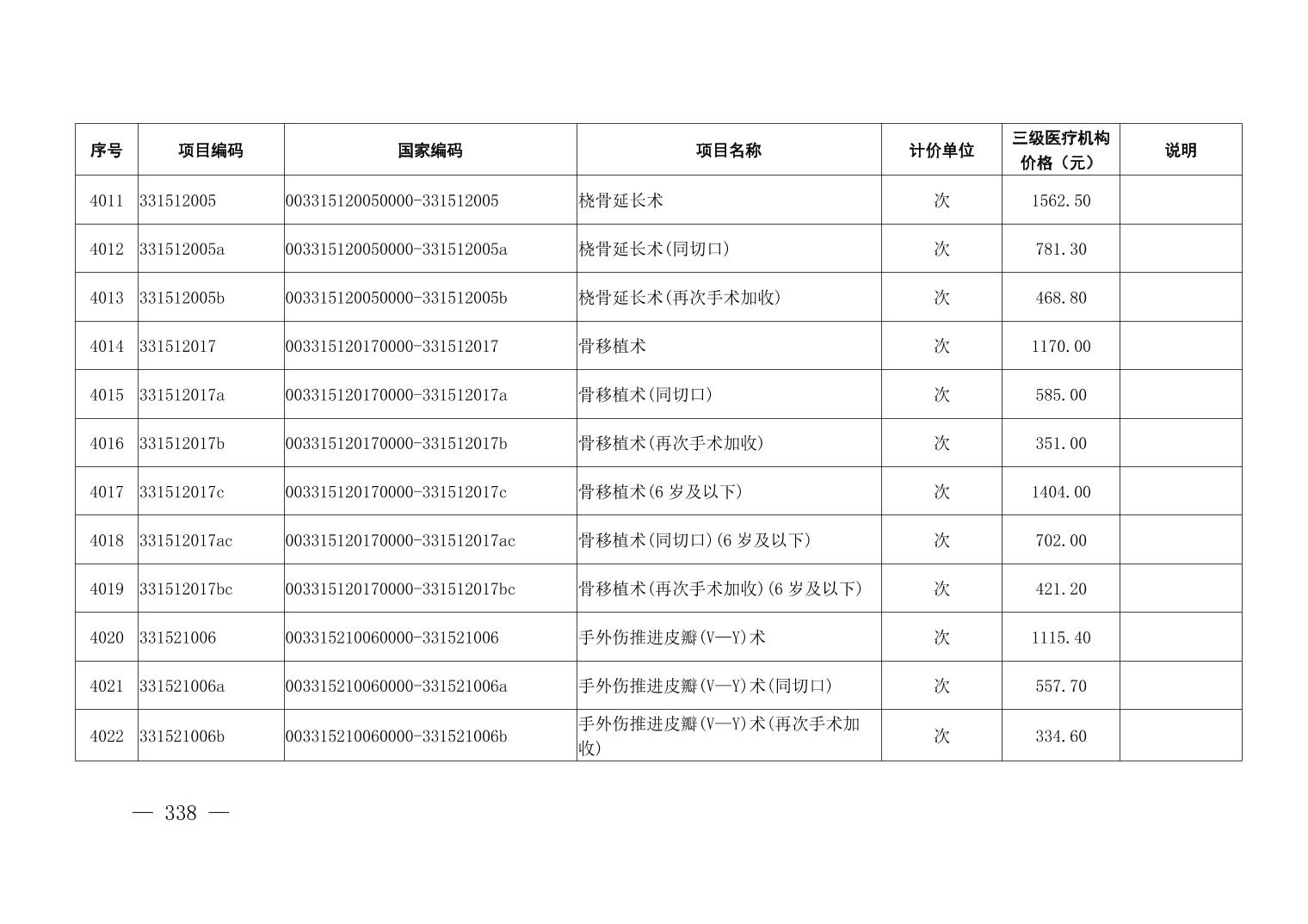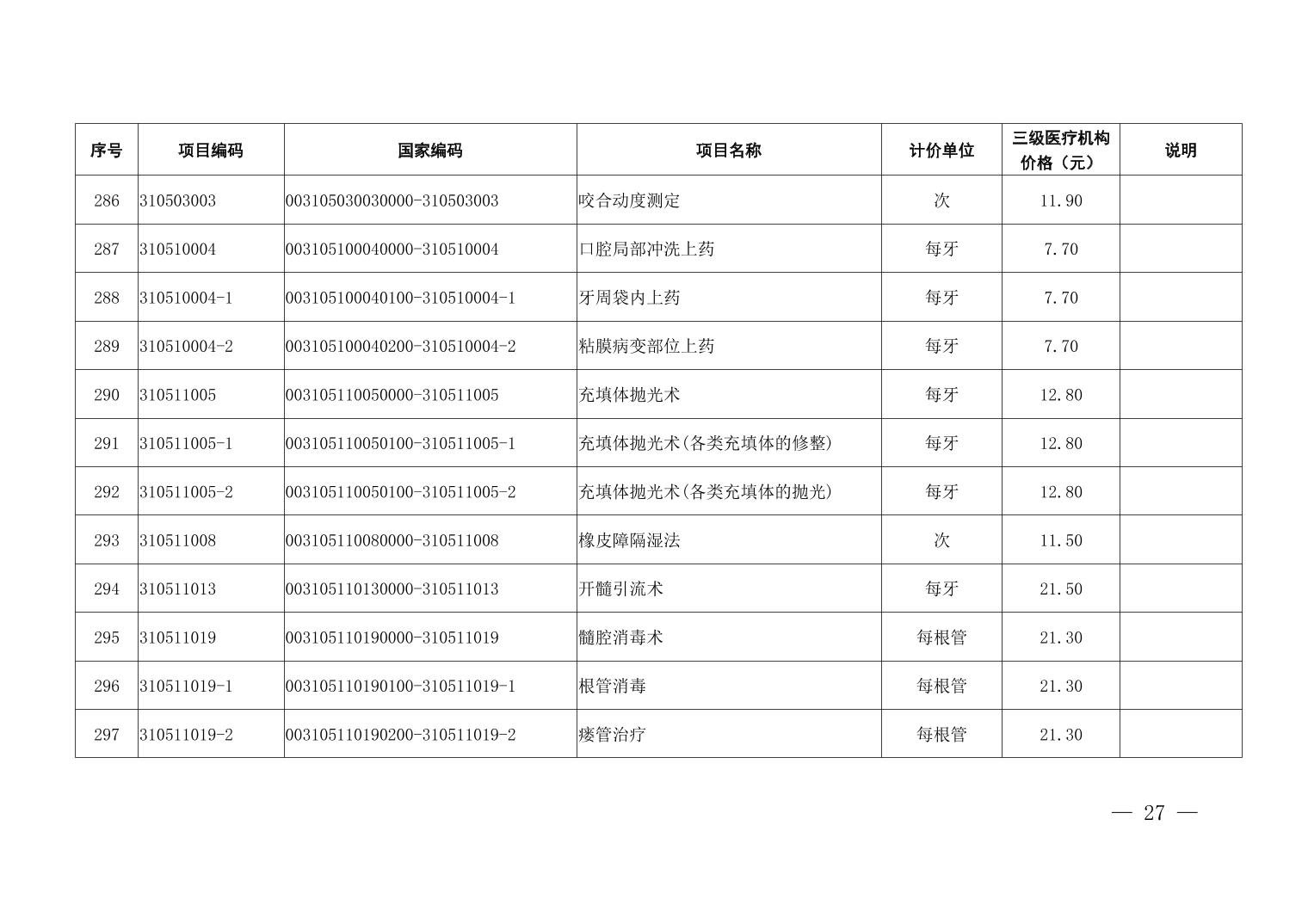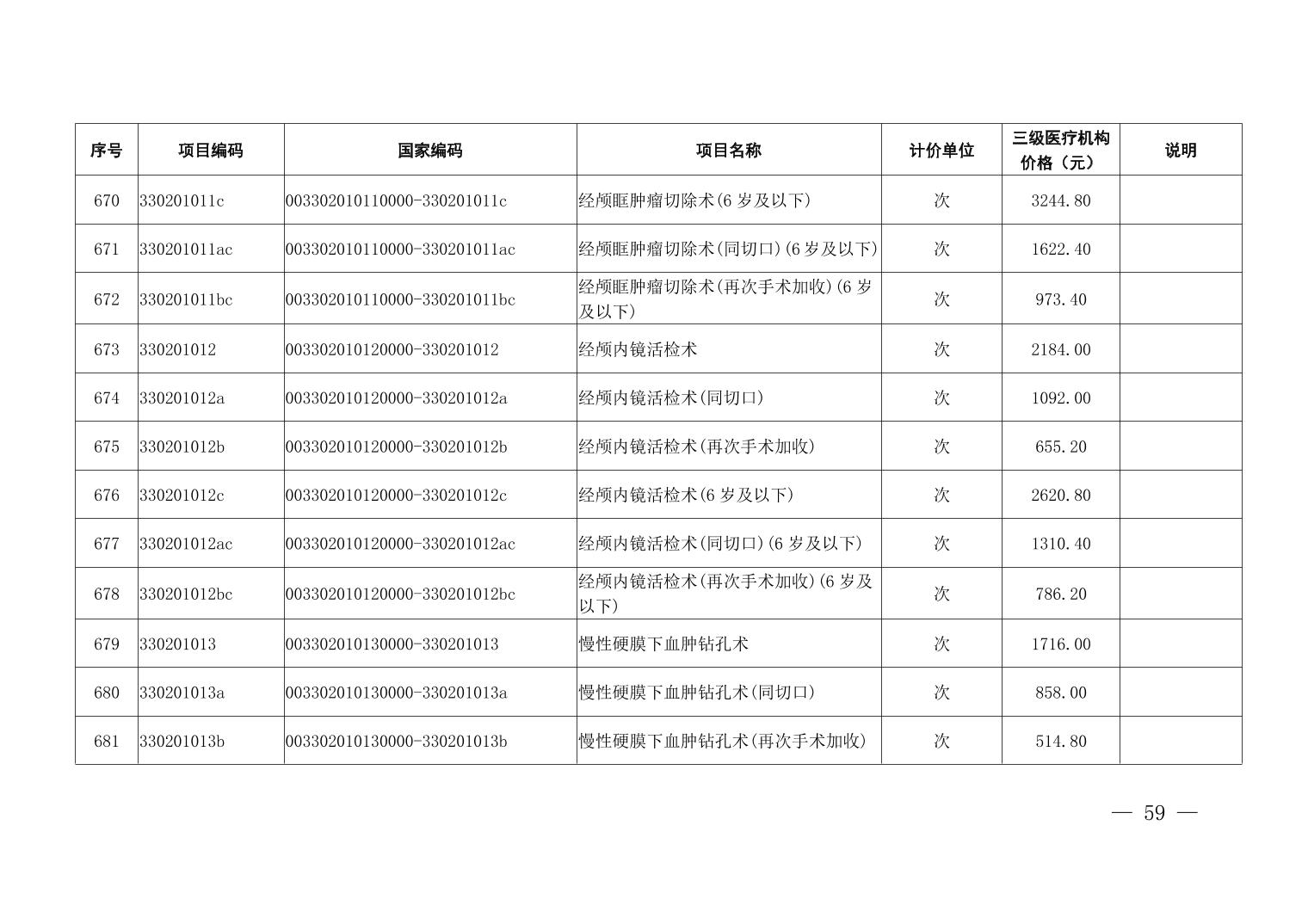 医疗服务项目价格