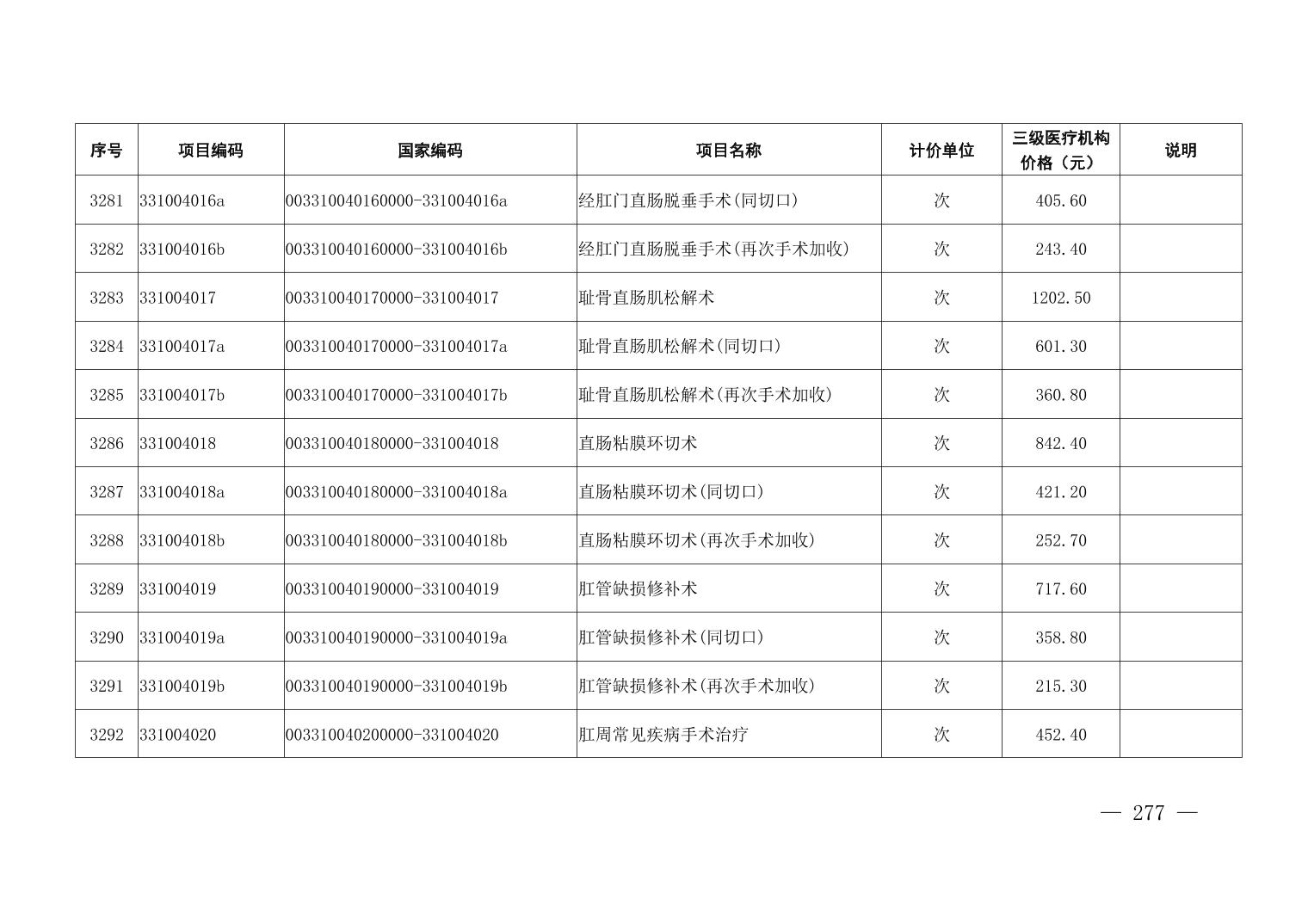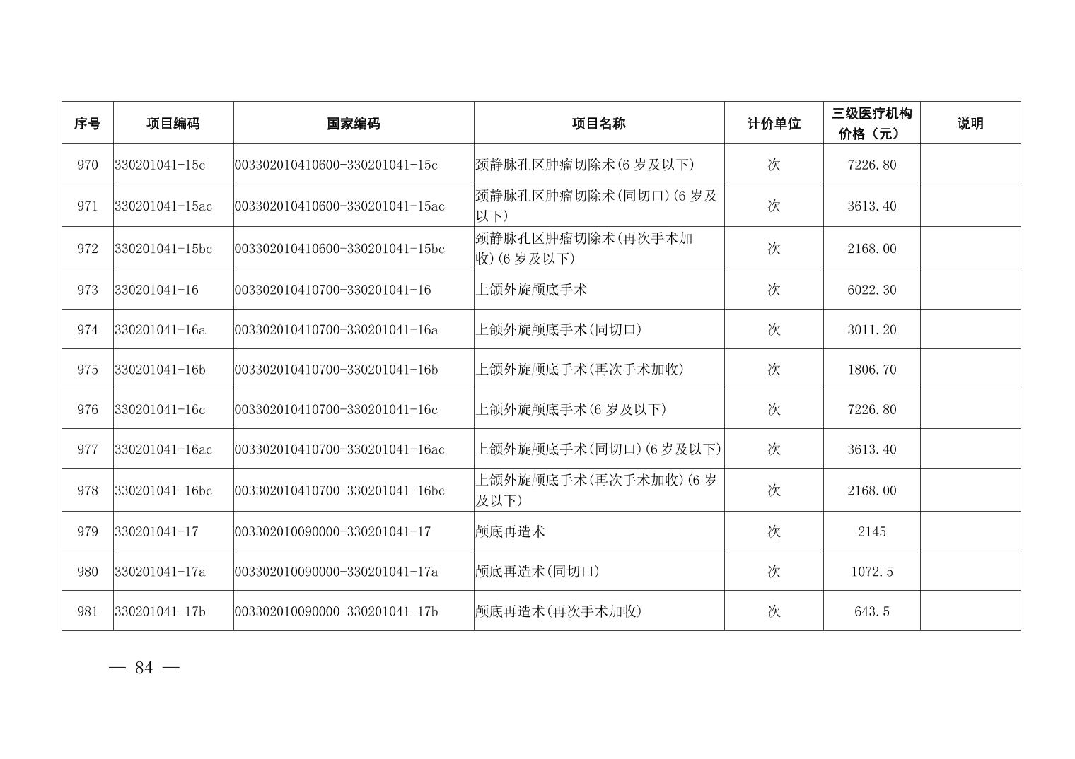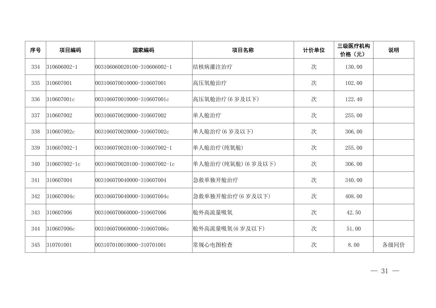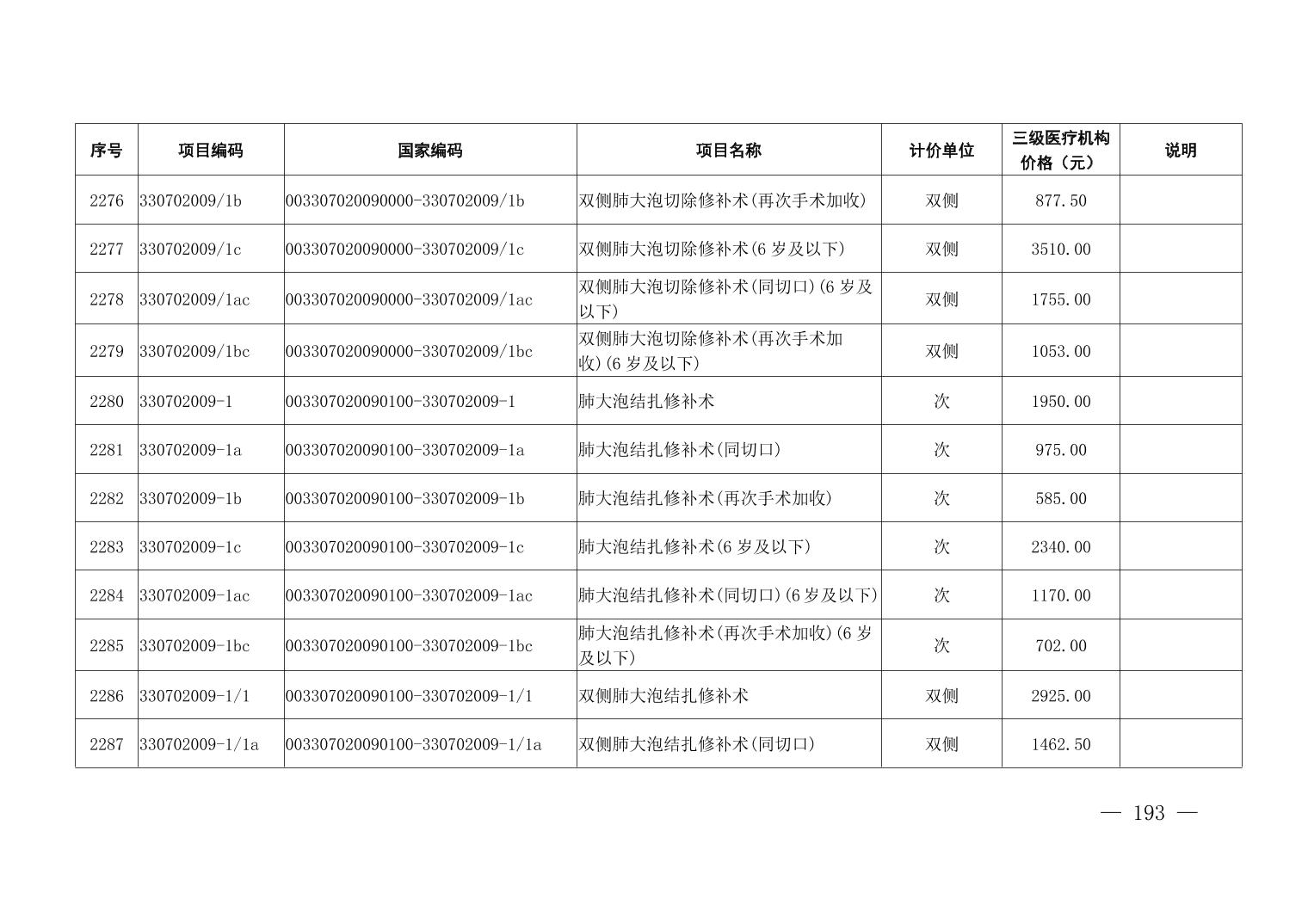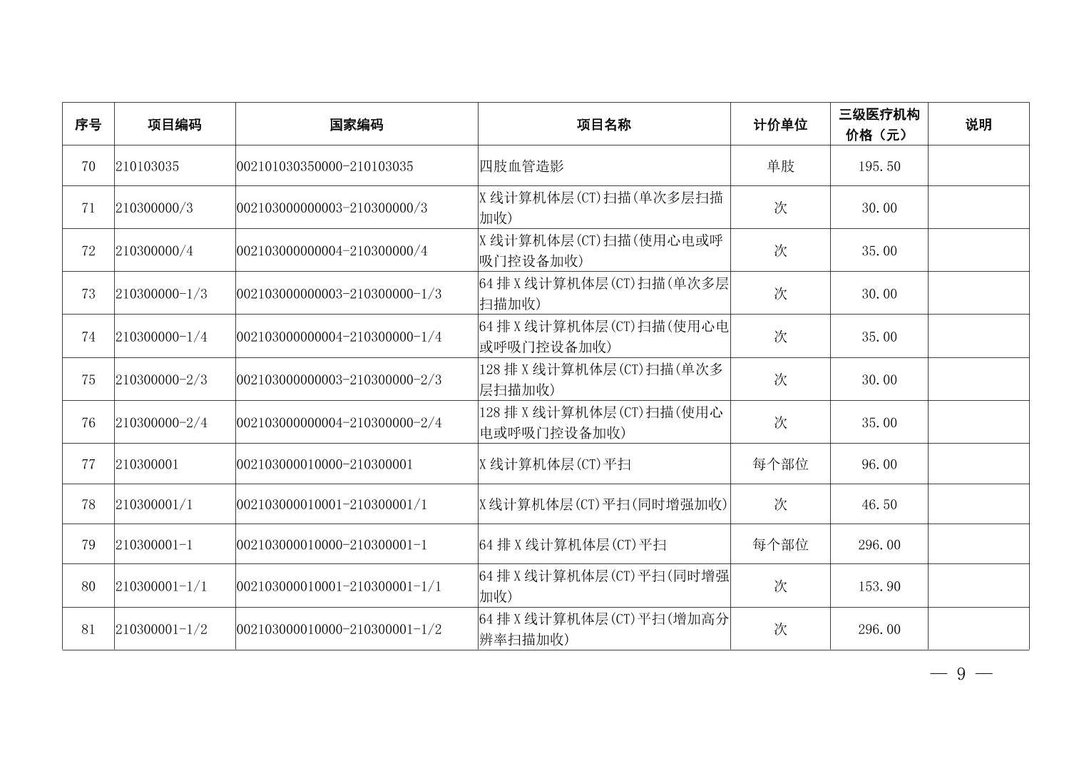 医疗服务项目价格