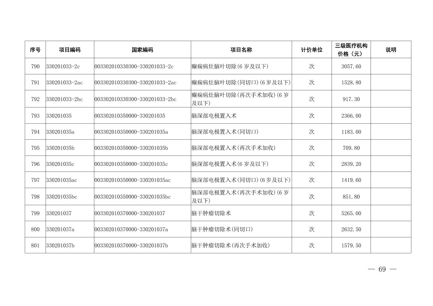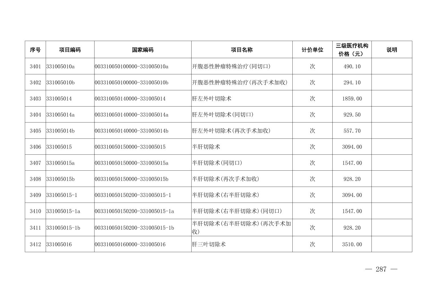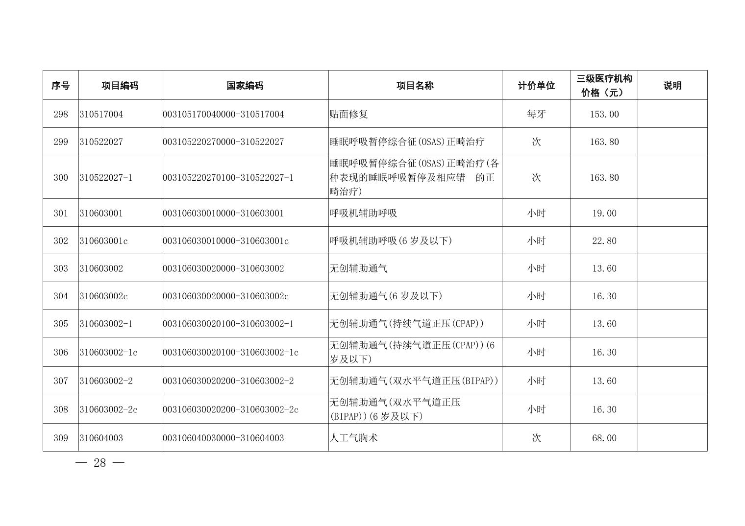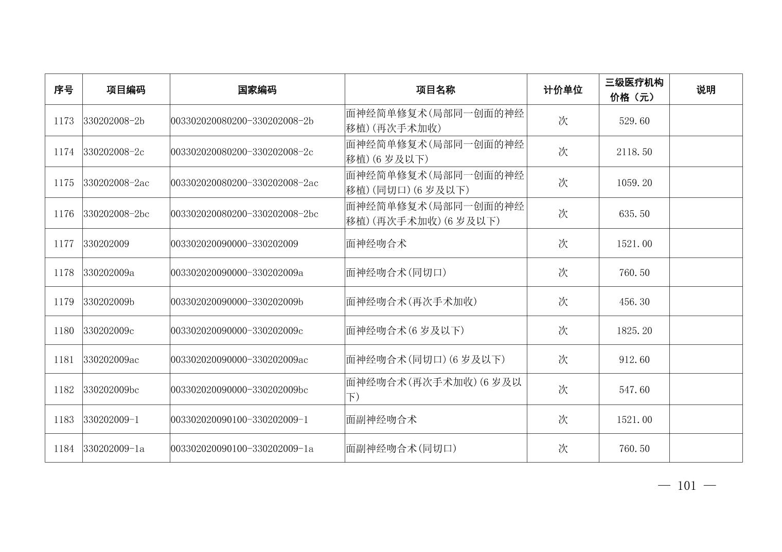 医疗服务项目价格