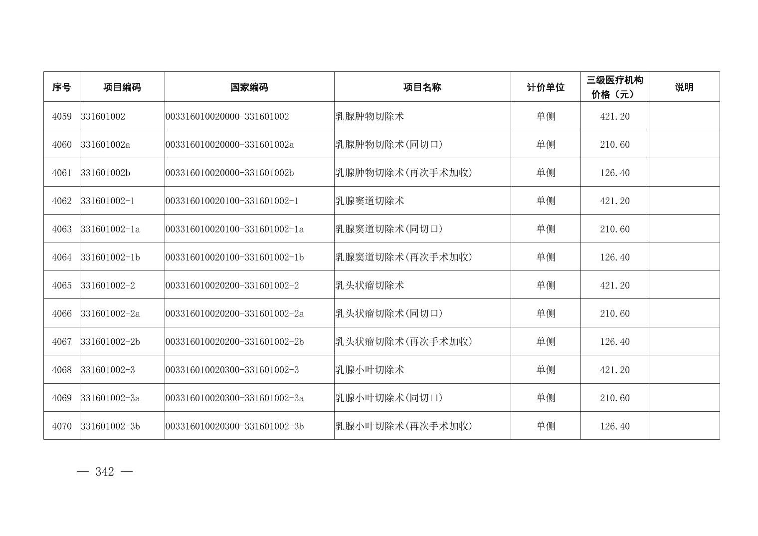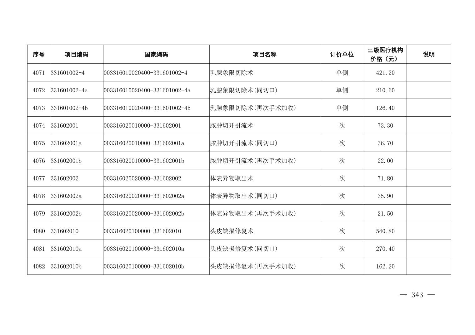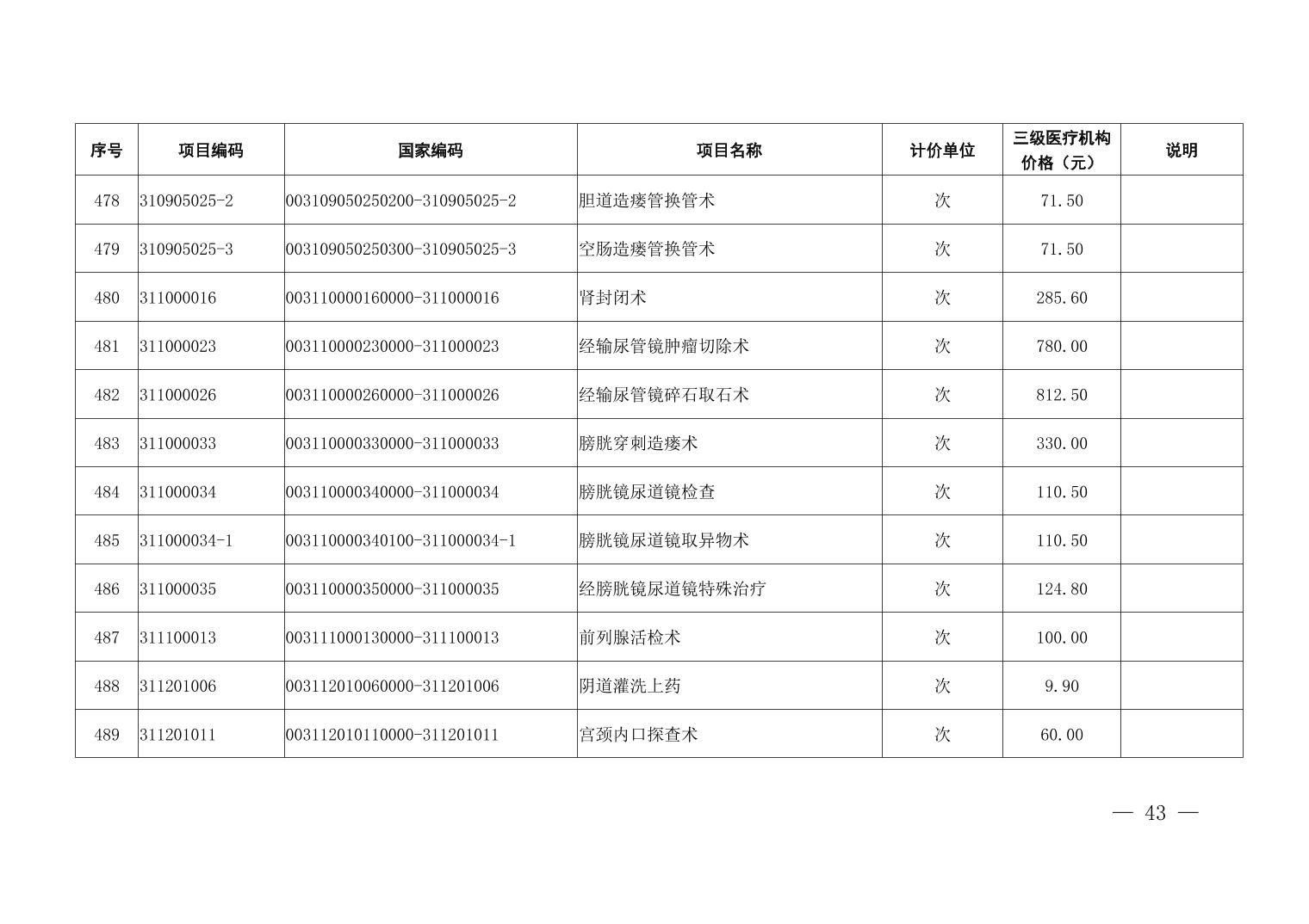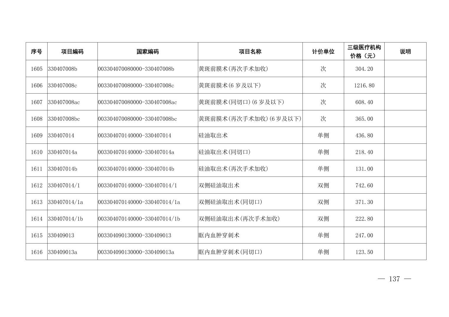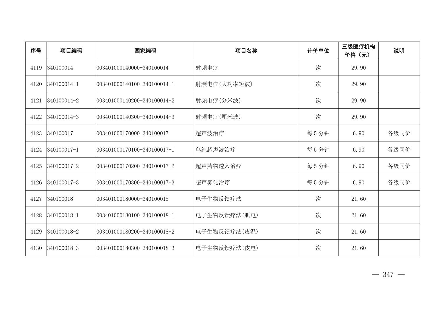 医疗服务项目价格
