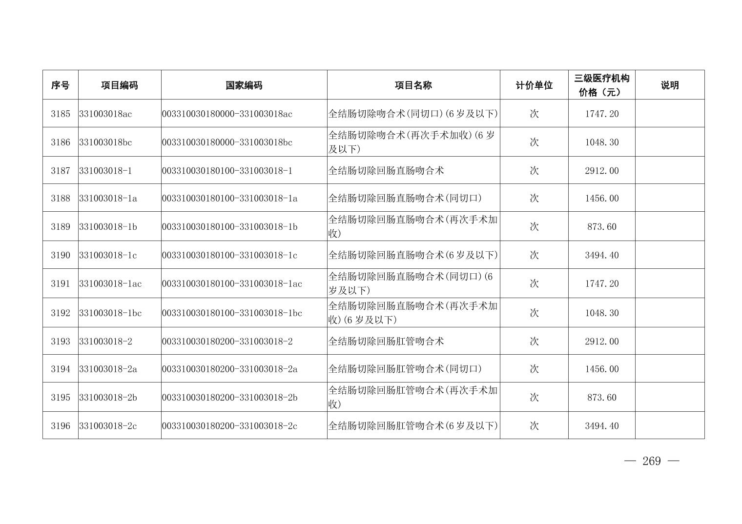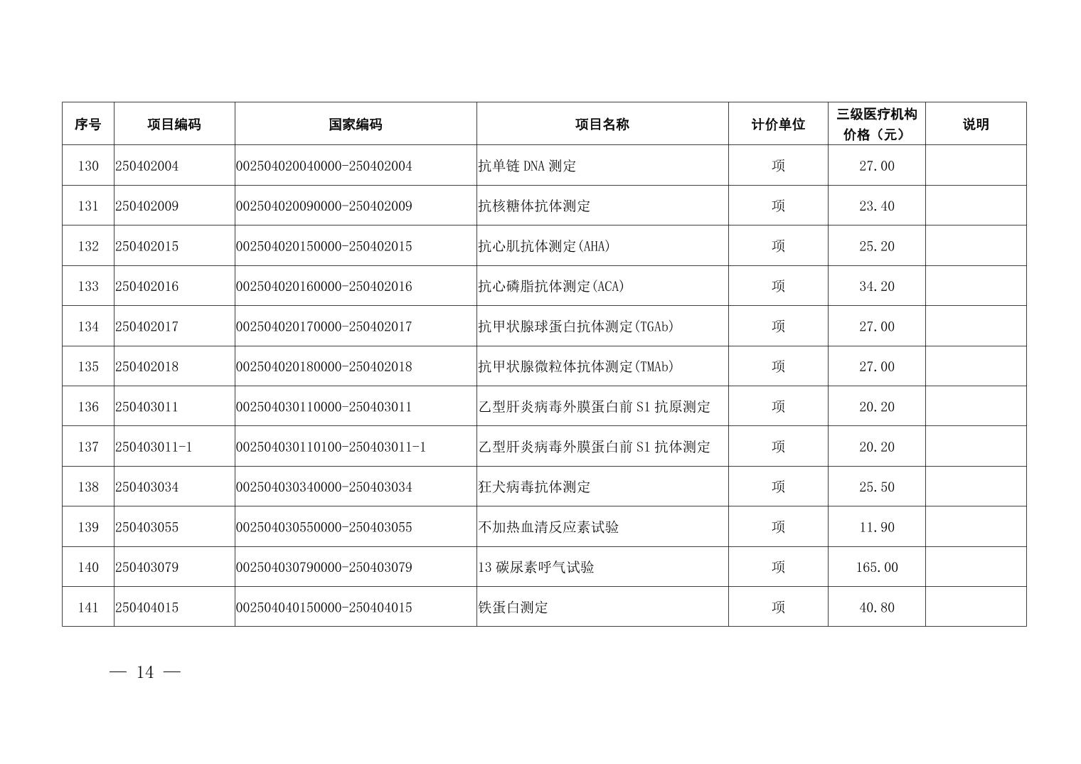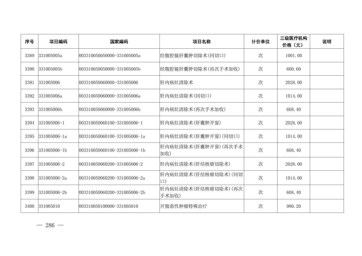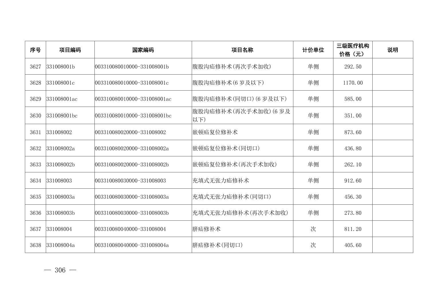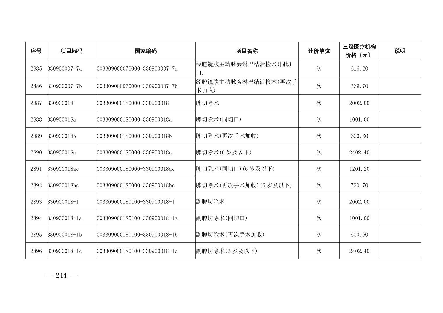 医疗服务项目价格