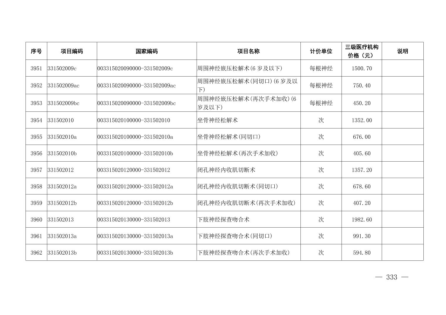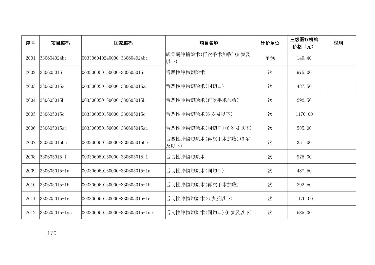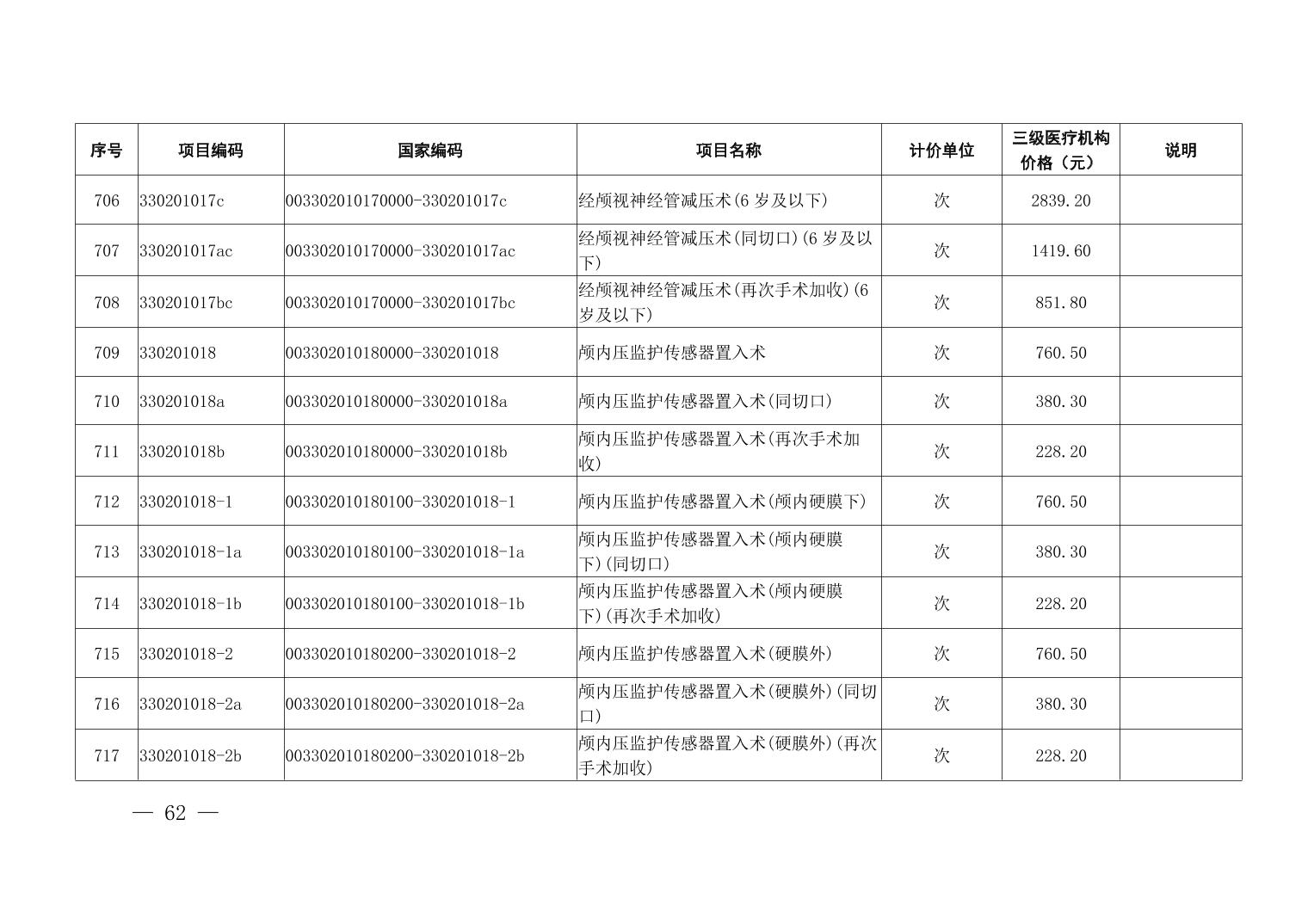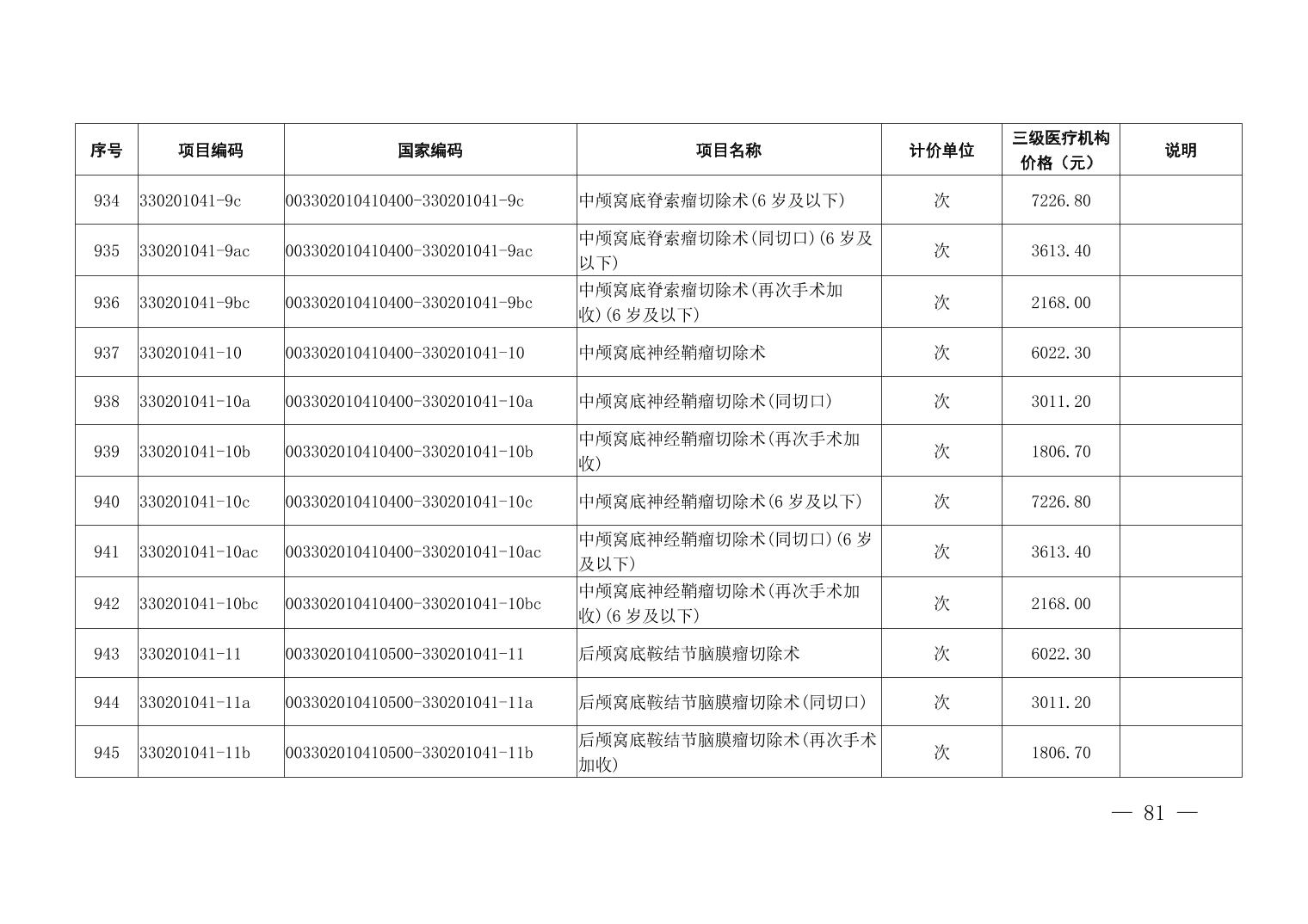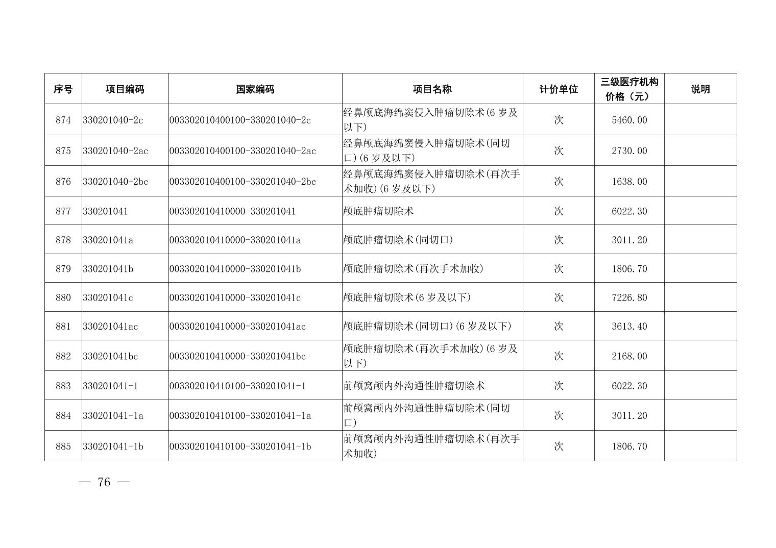 医疗服务项目价格
