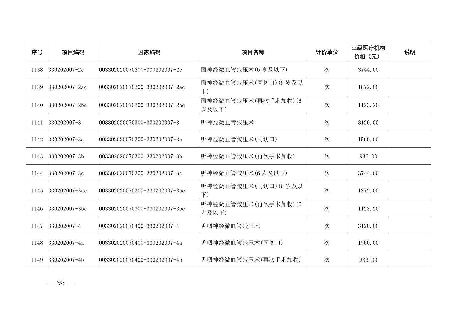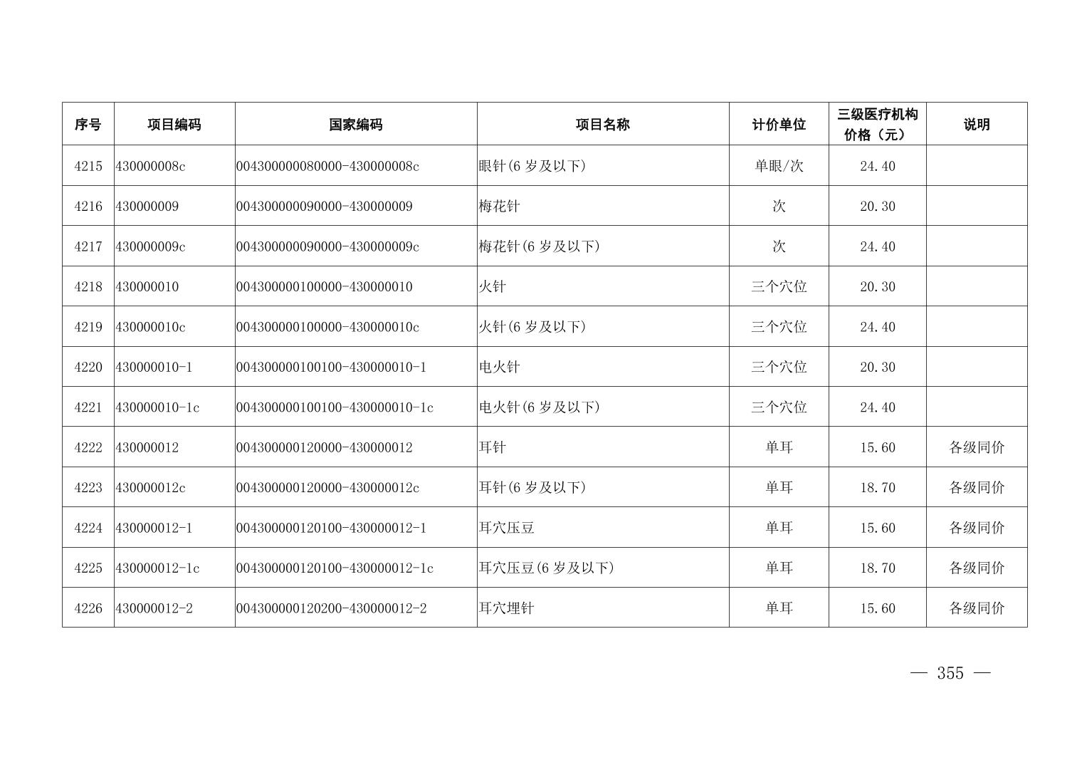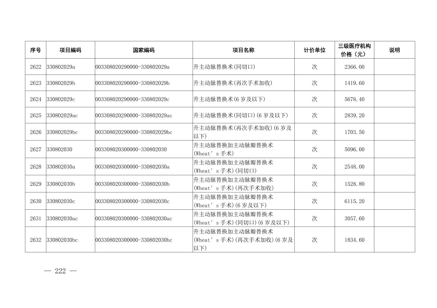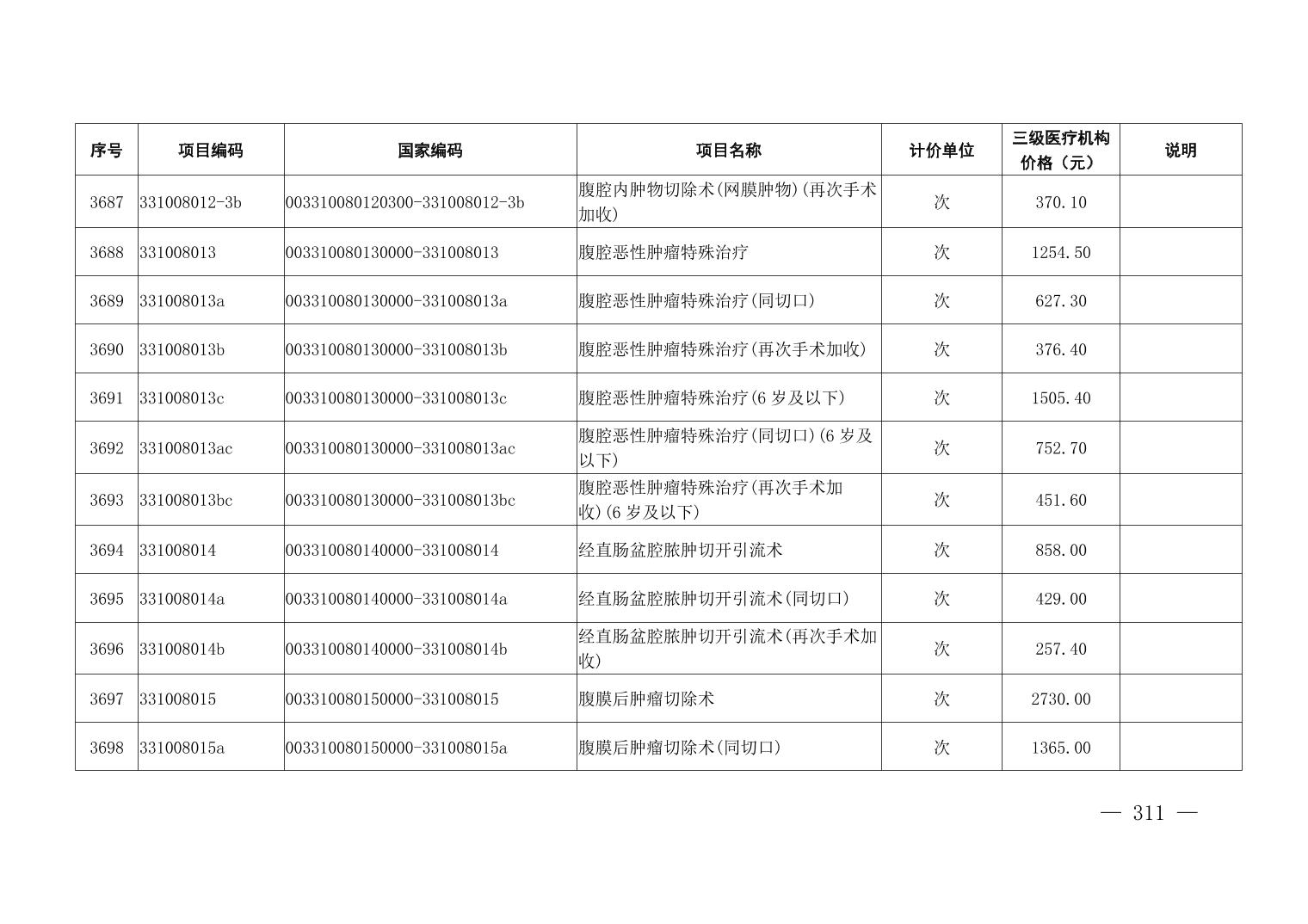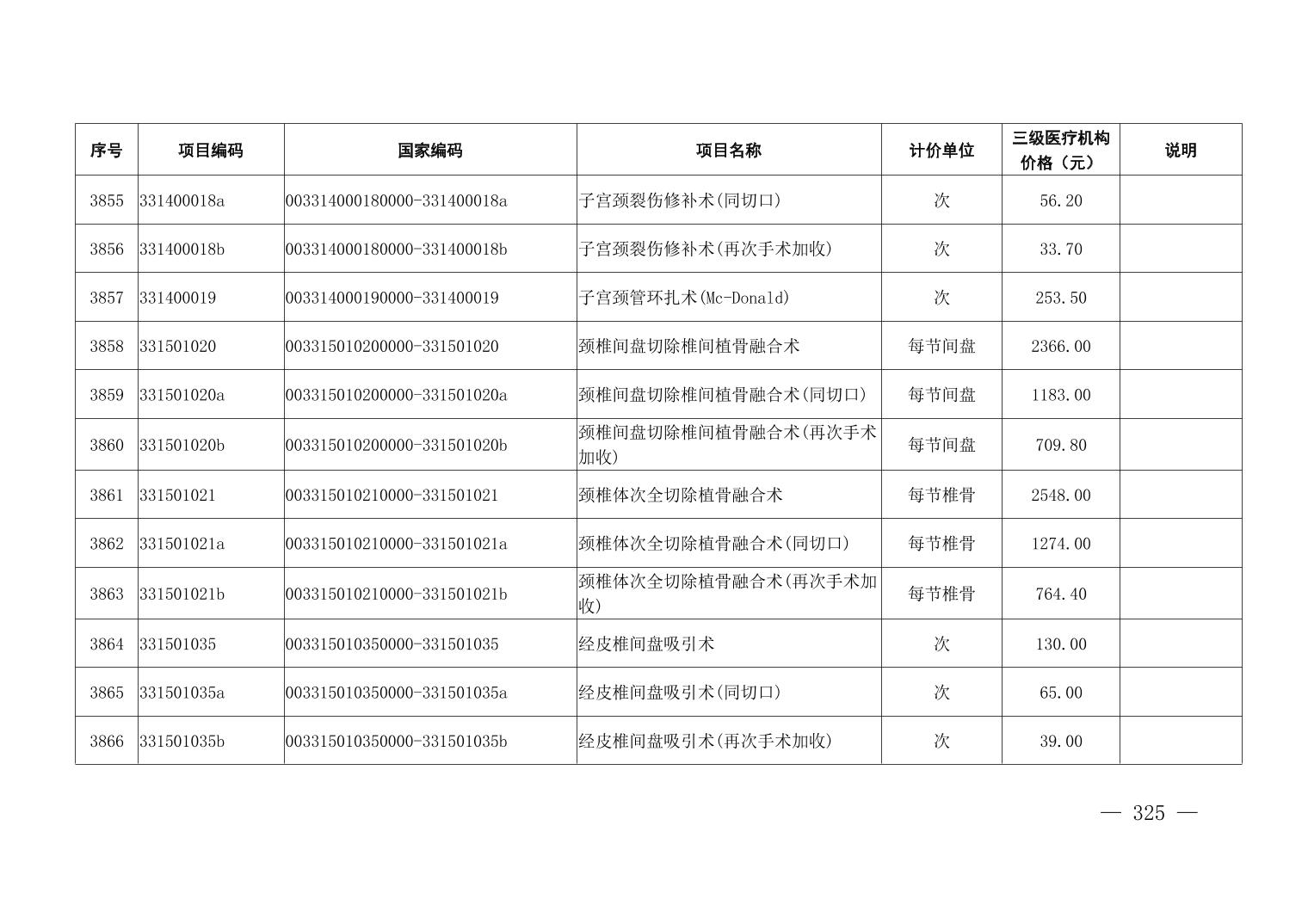 医疗服务项目价格