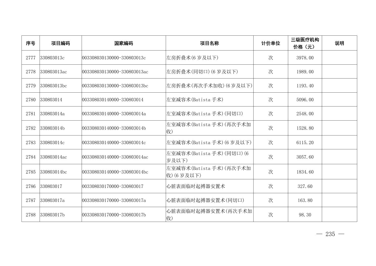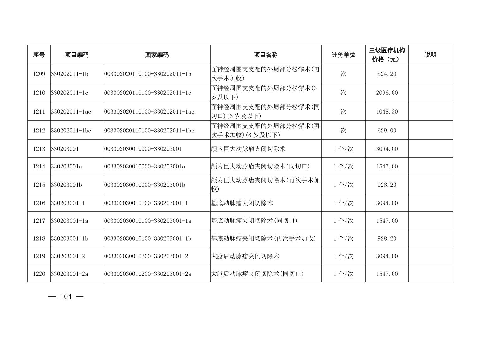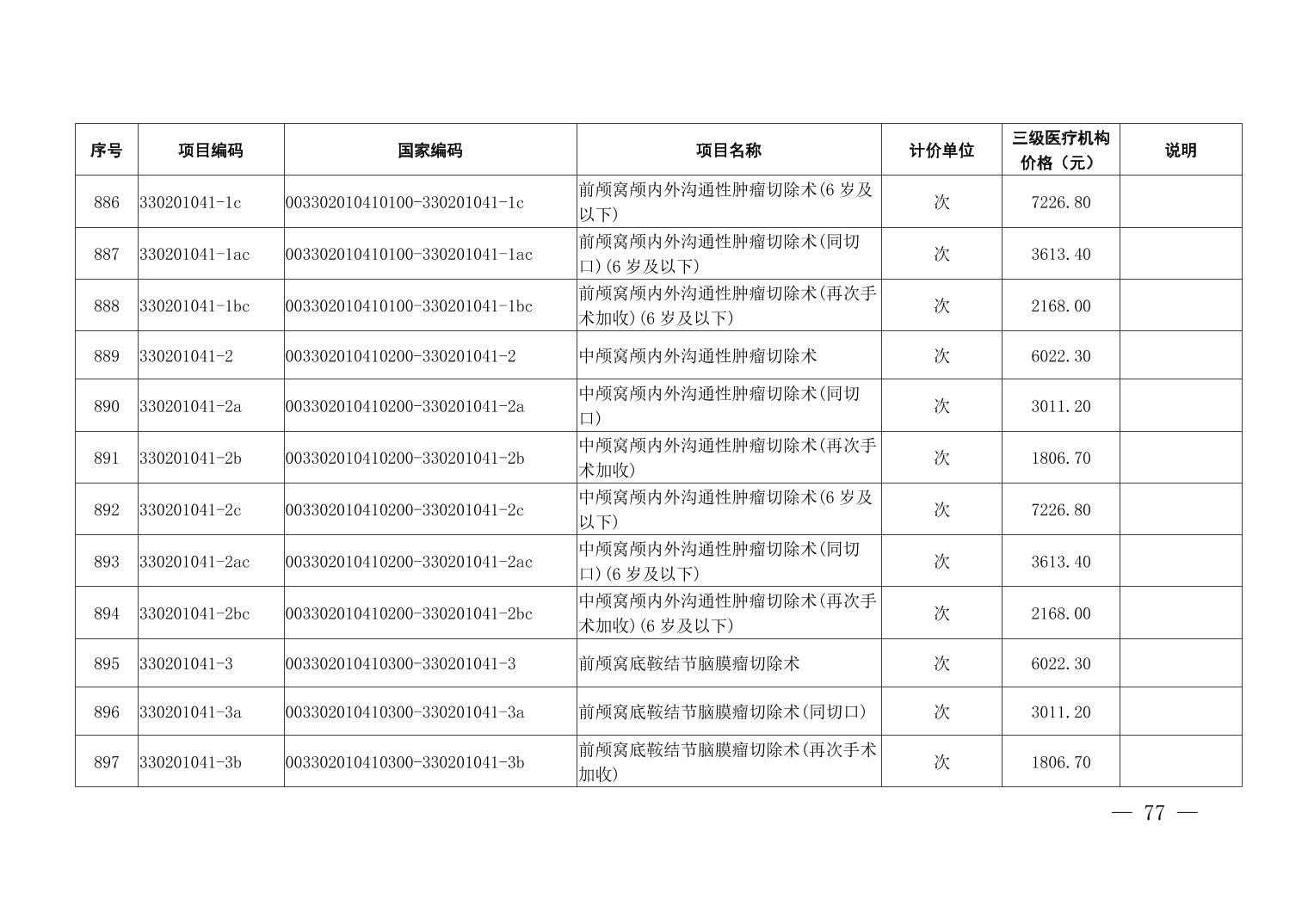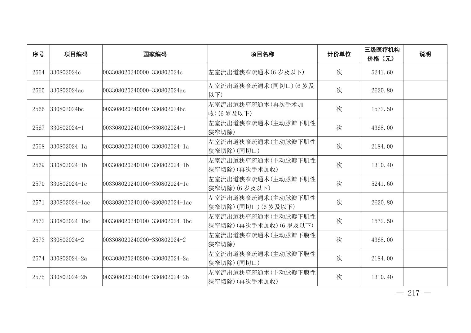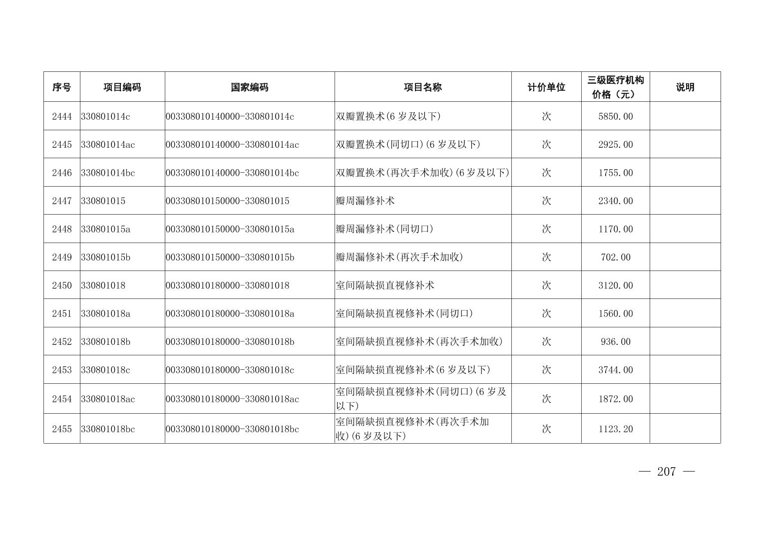 医疗服务项目价格